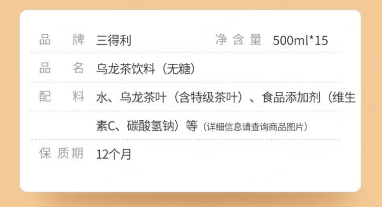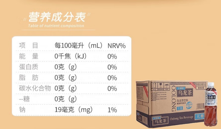 三得利SUNTORY 无糖乌龙茶饮料 500ml*15瓶/箱