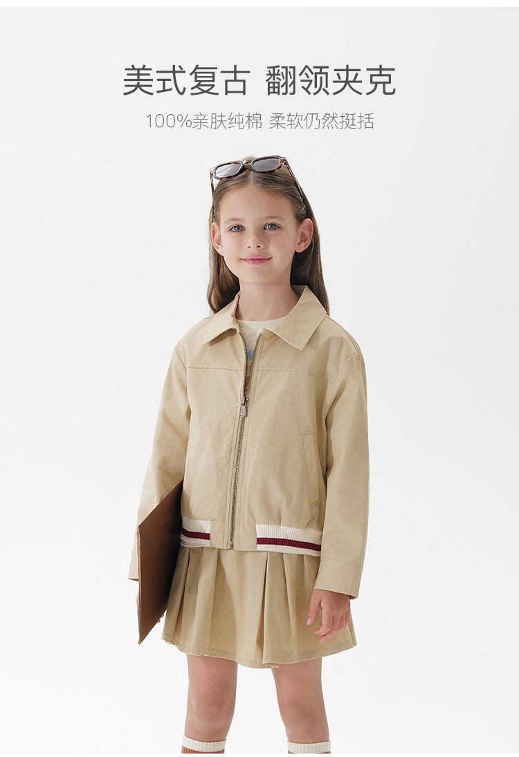 马克珍妮女童美式复古纯棉夹克外套2025年春装新款250128