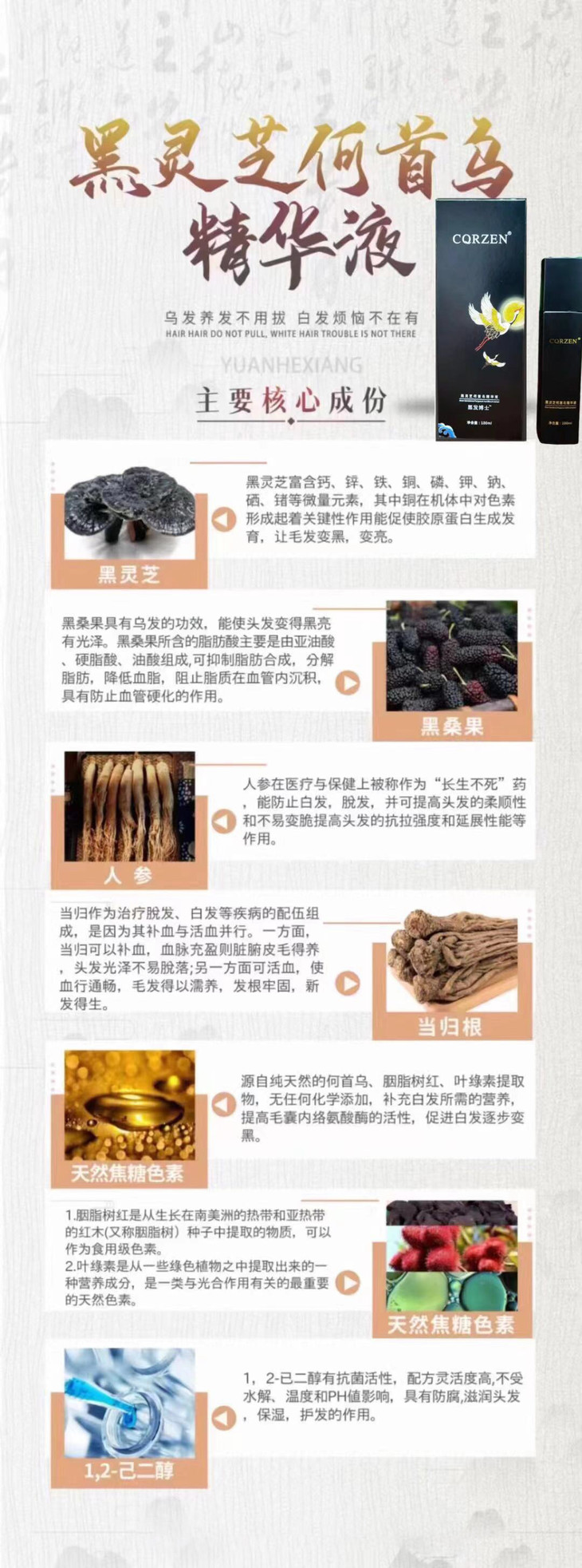 【商品名称】:CQRZEN黑灵芝何首乌精华液