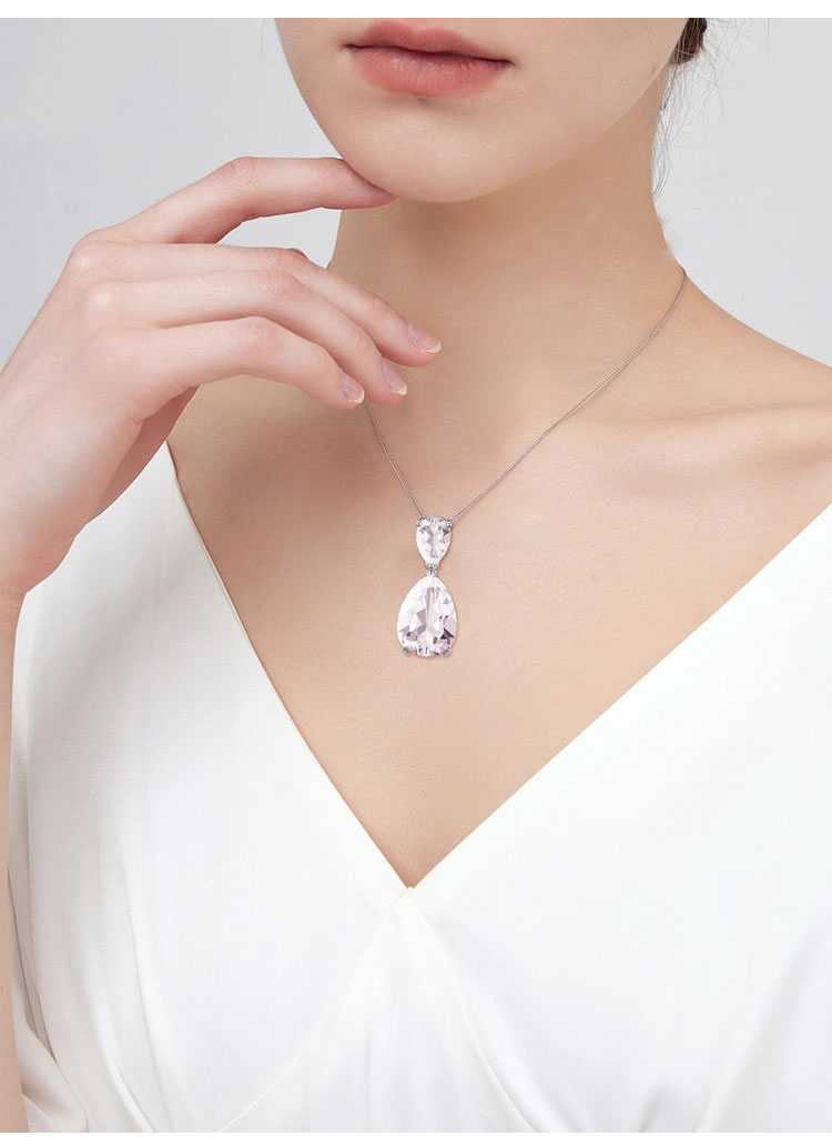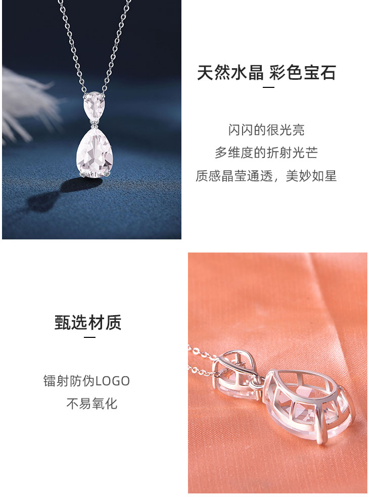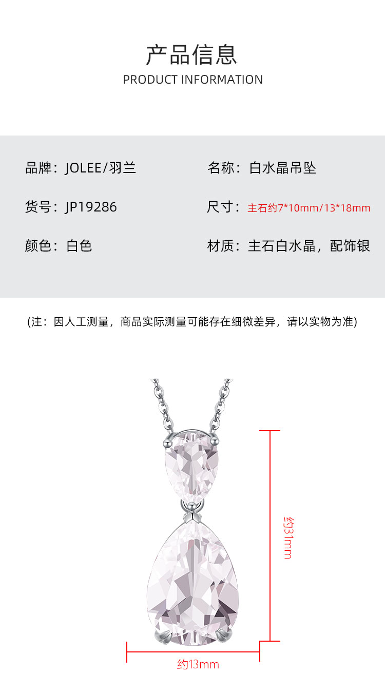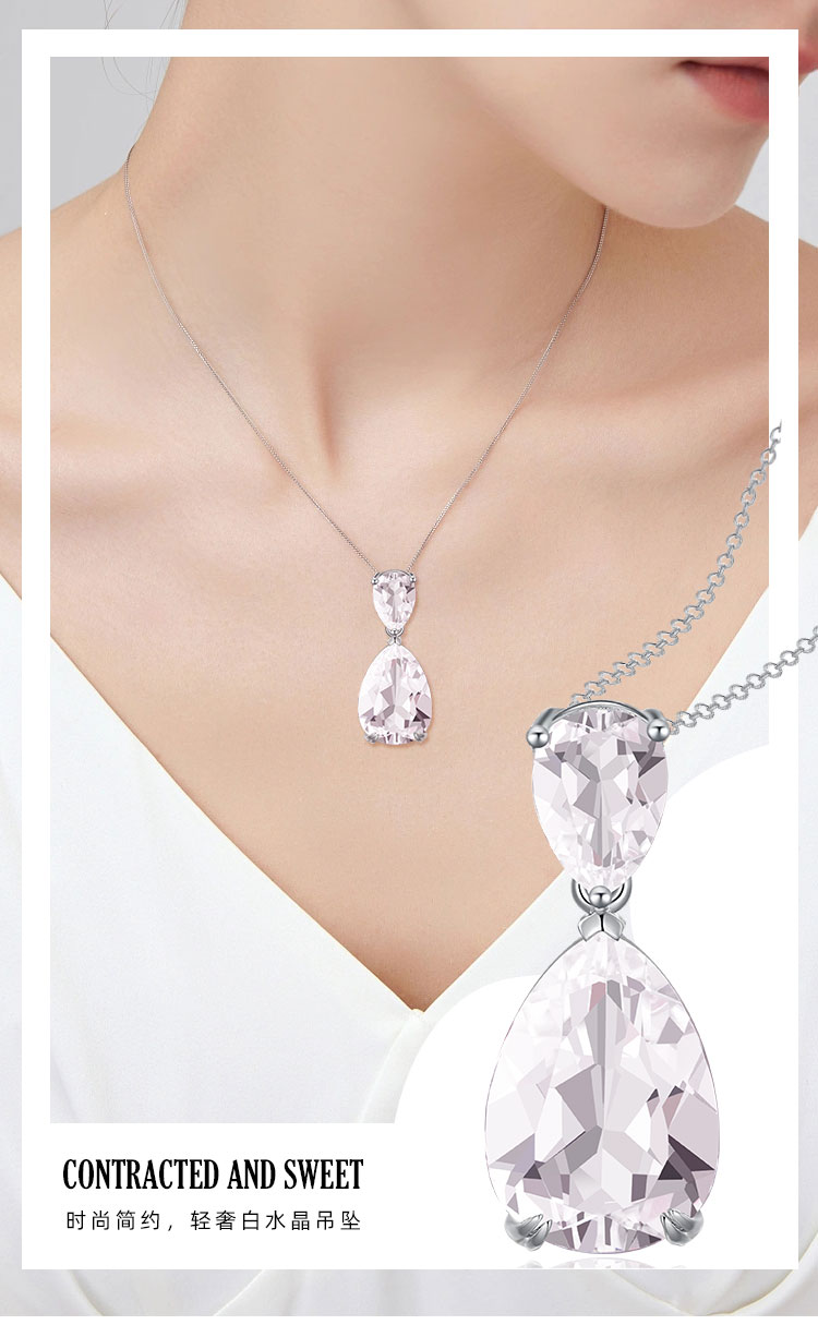 【白水晶吊坠】S925银天然白水晶吊坠彩色宝石时尚轻奢项坠JP19286