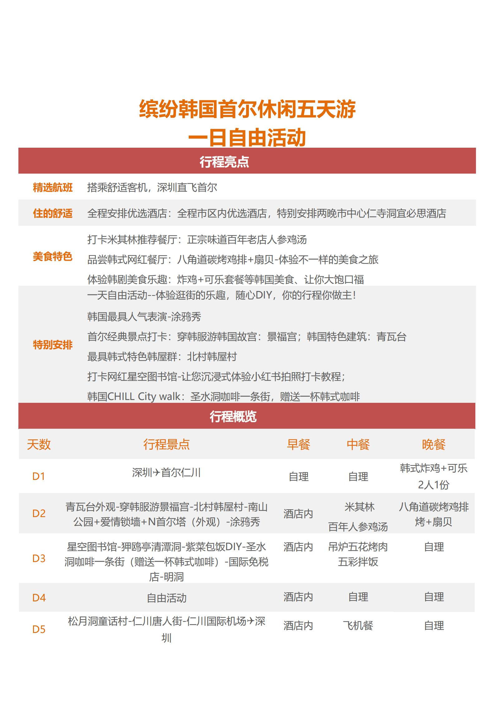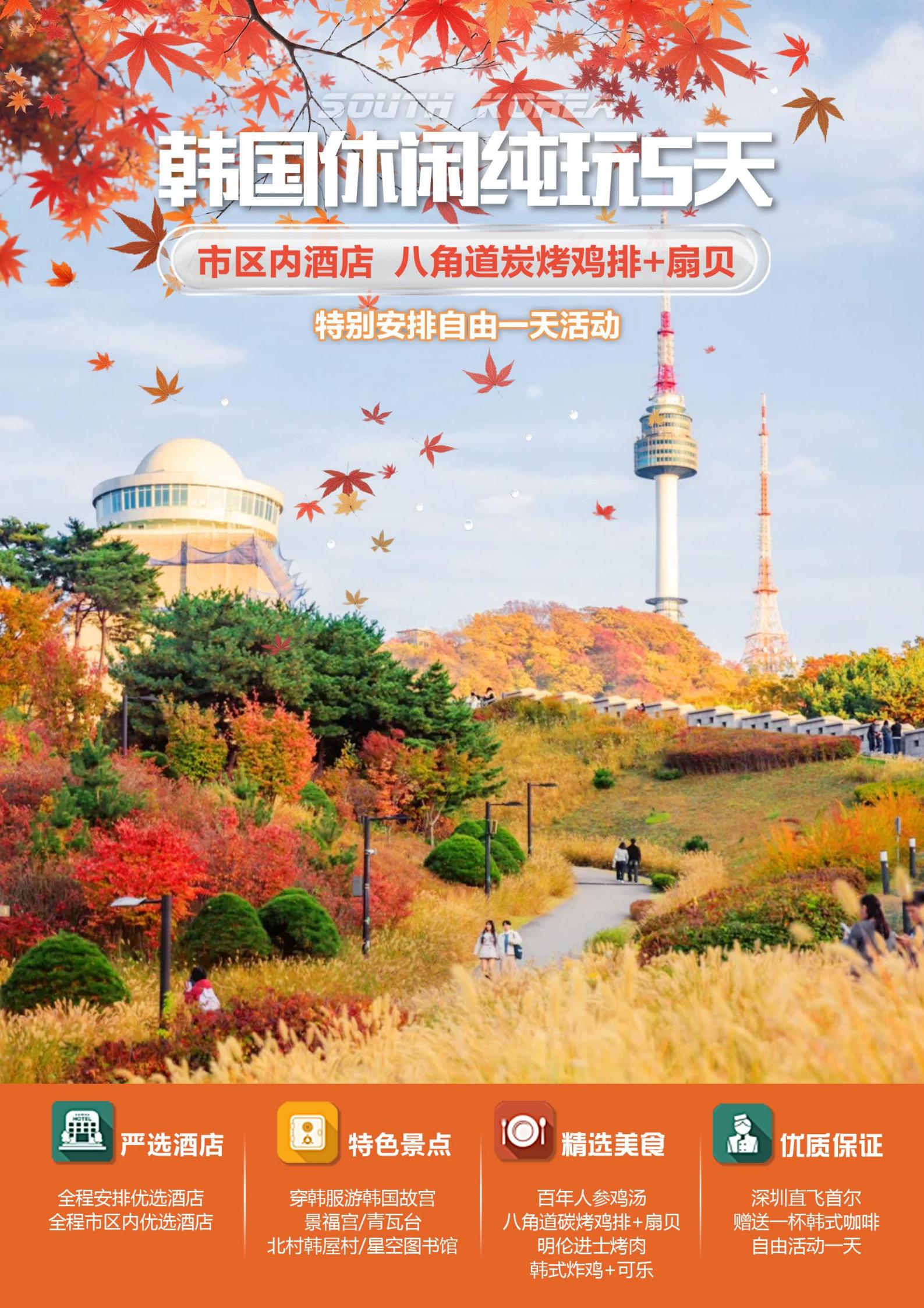 【秋季赏枫】<韩国首尔休闲5日游-深圳直飞往返>特别安排首尔1天自由活动