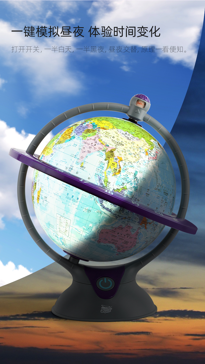 【黑金专享】科学罐头3合1高清发光世界地球仪儿童中小学生用地理摆件灯20cm大