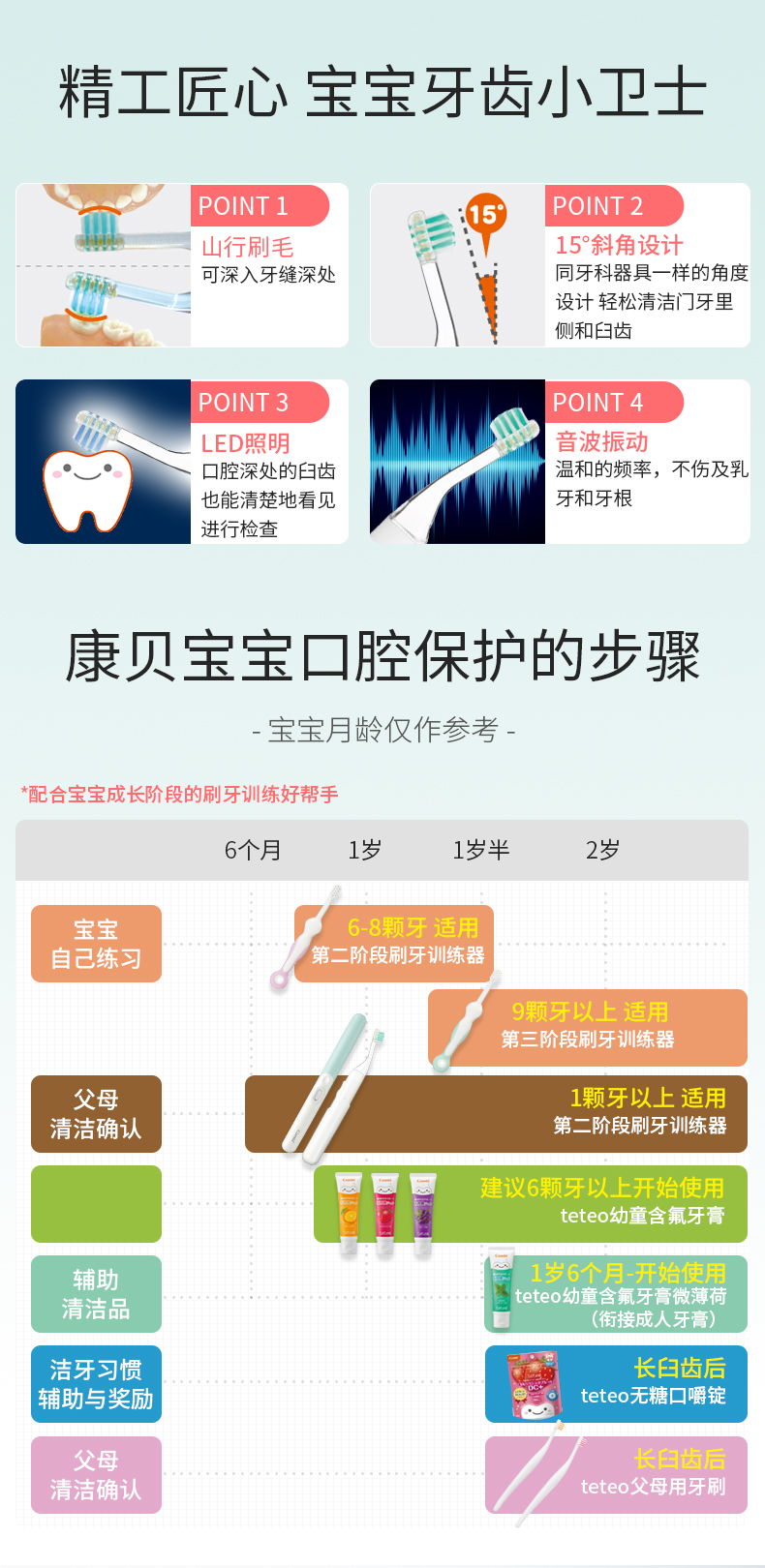 Combi康贝宝宝牙刷婴幼儿护牙软毛可替换式音波震动儿童电动牙刷