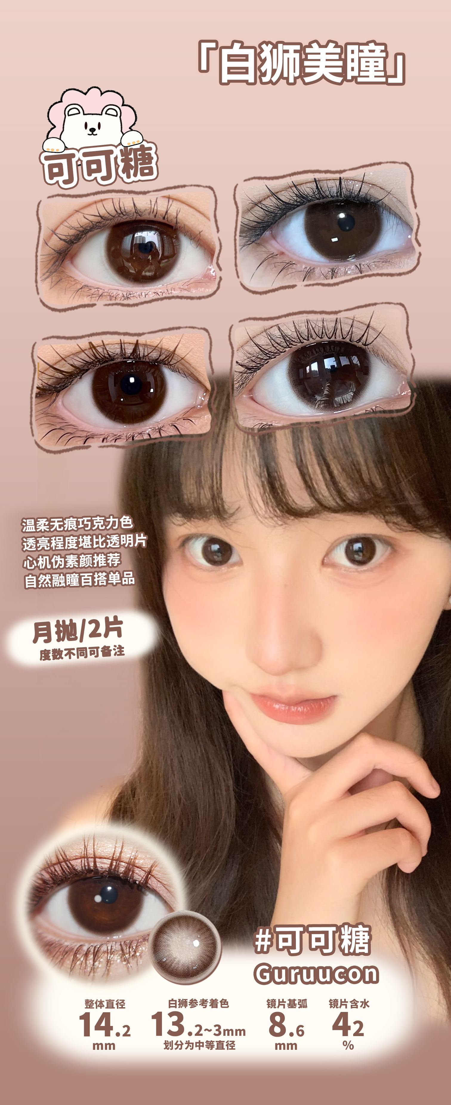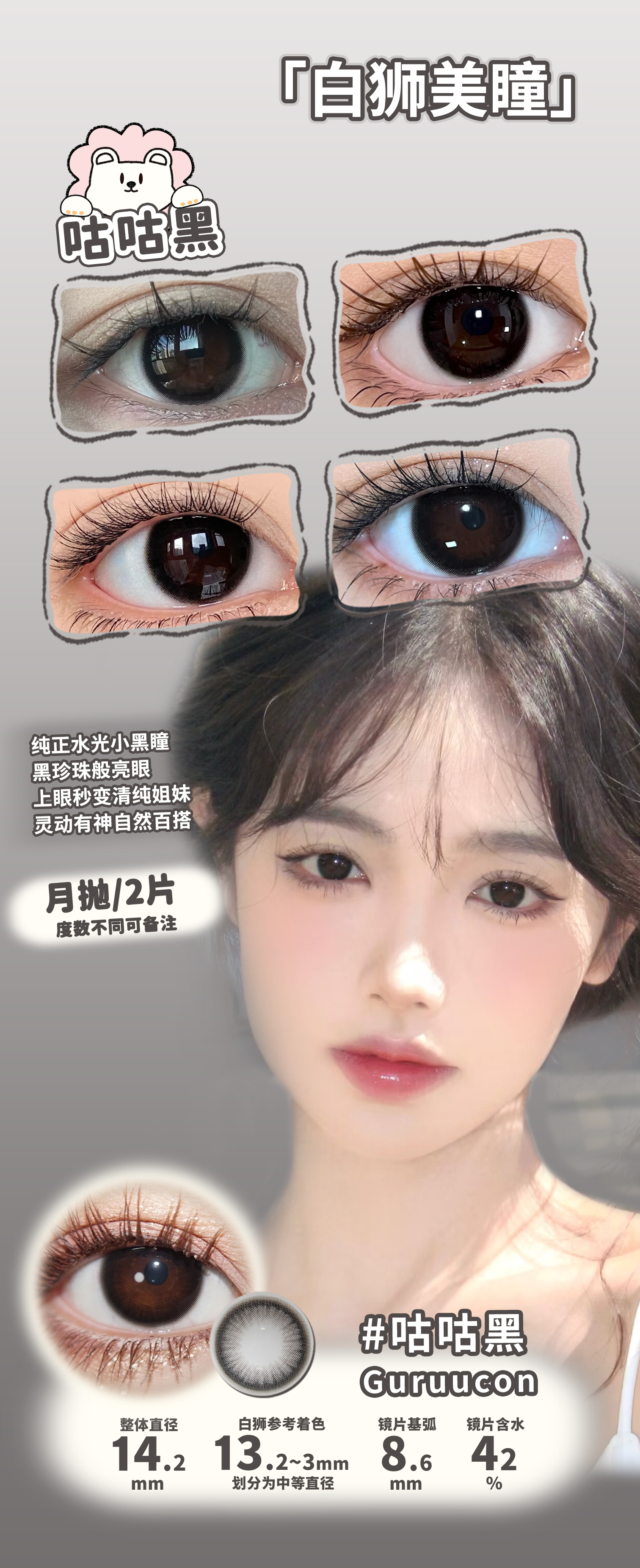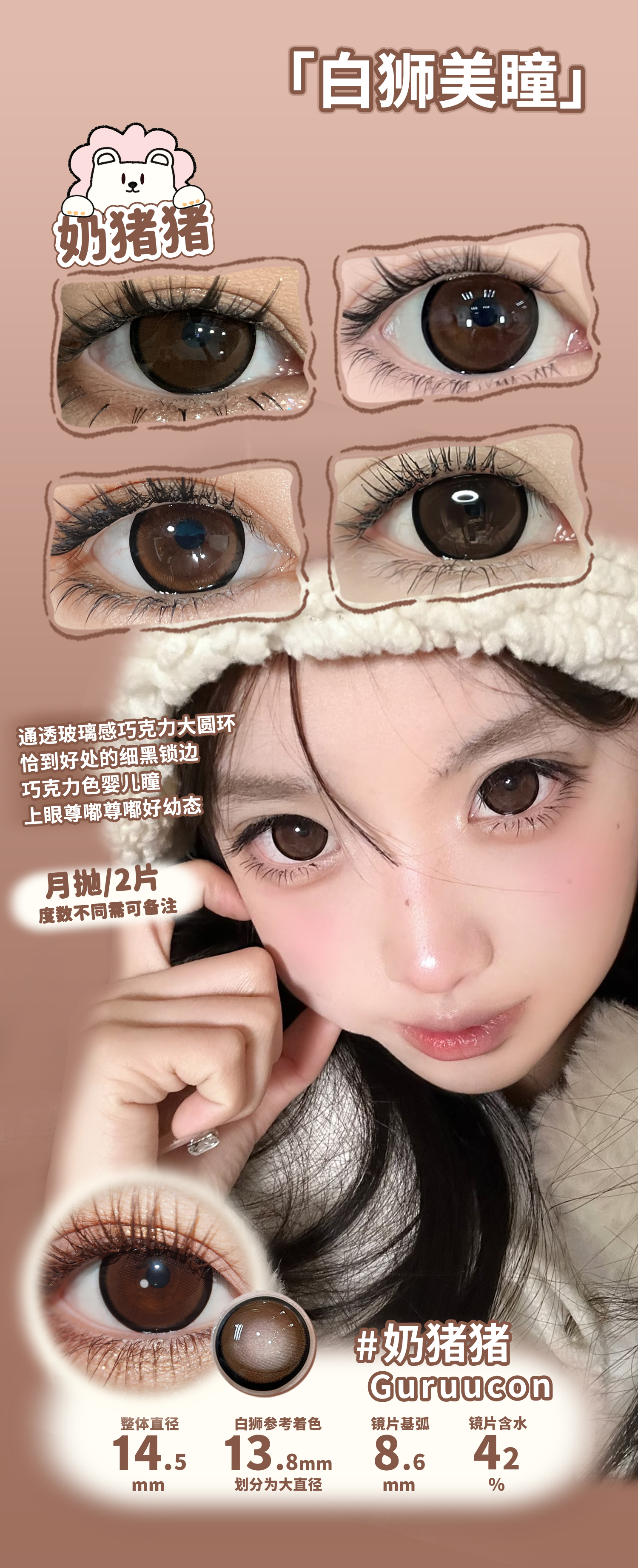 Guruucon旗下 ·咕咕黑&可可糖&黑牛奶&奶猪猪|月抛 2片