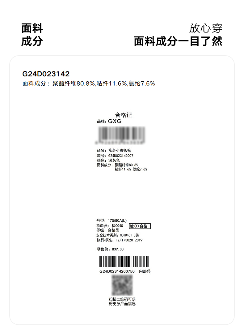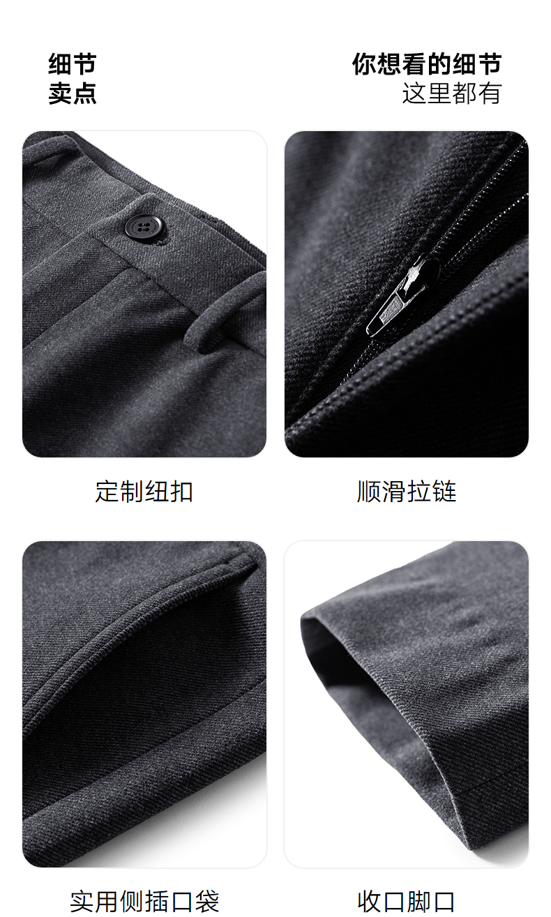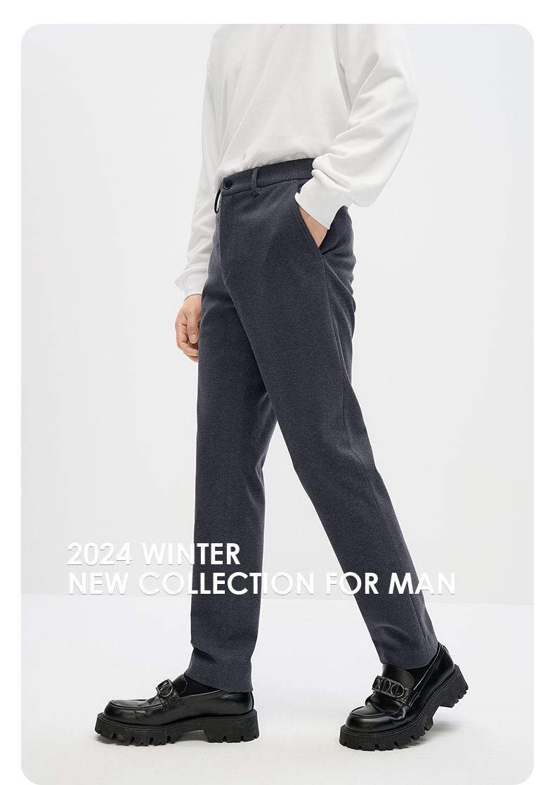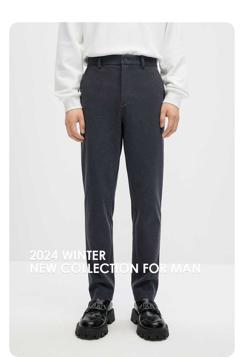 GXG男装 2024冬季热卖GXG男士休闲简约深灰色保暖修身小脚长裤爆款休闲裤