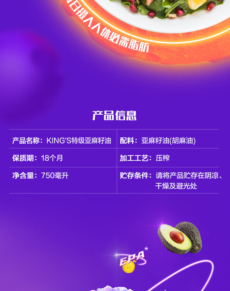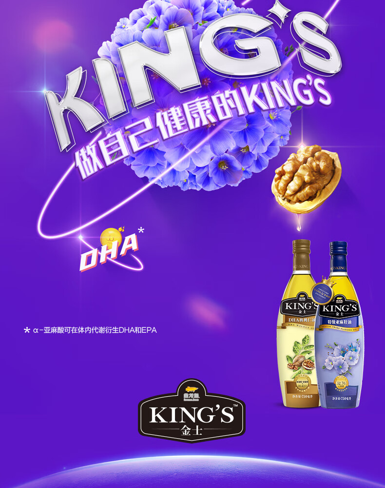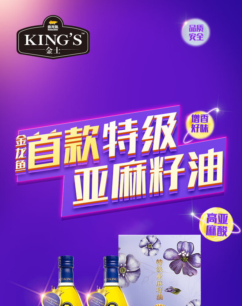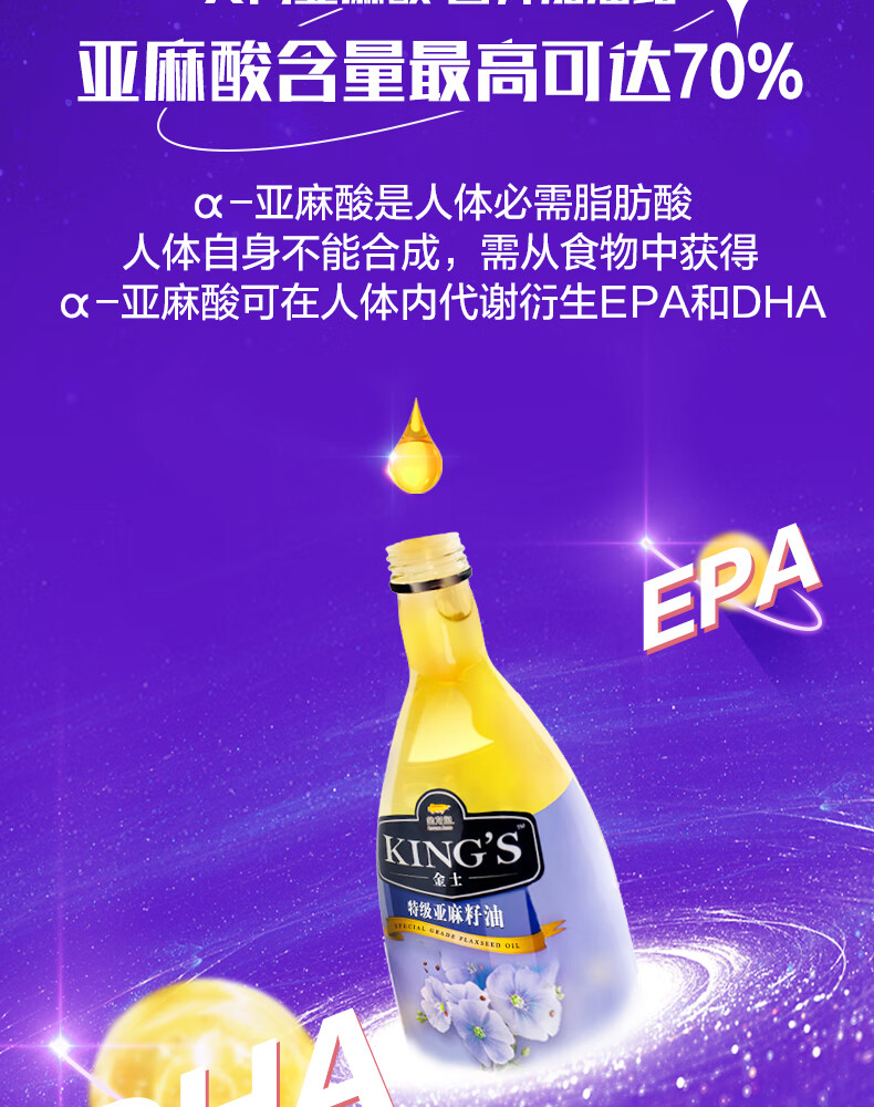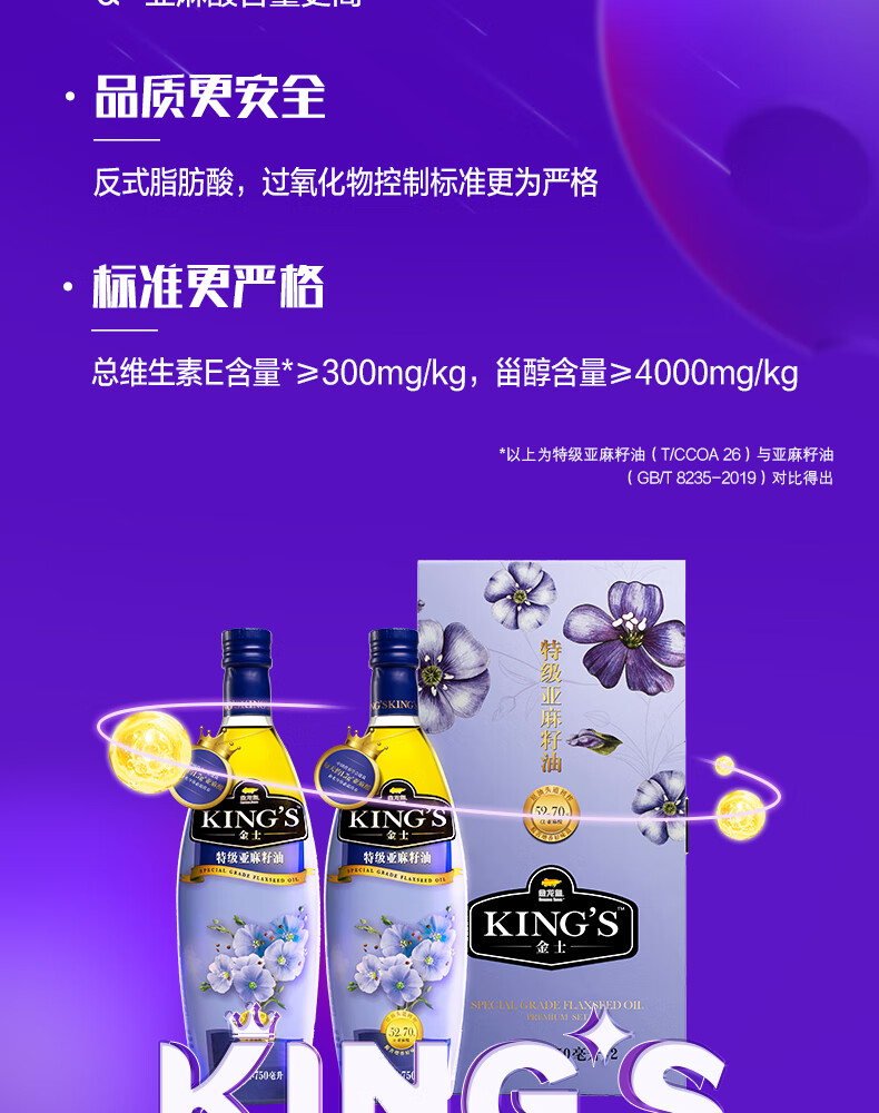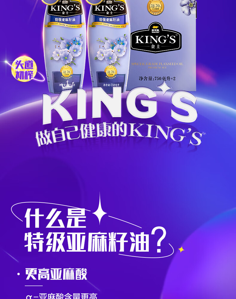 金龙鱼KING'S亚麻籽油750ML*2(新配方/礼盒装)