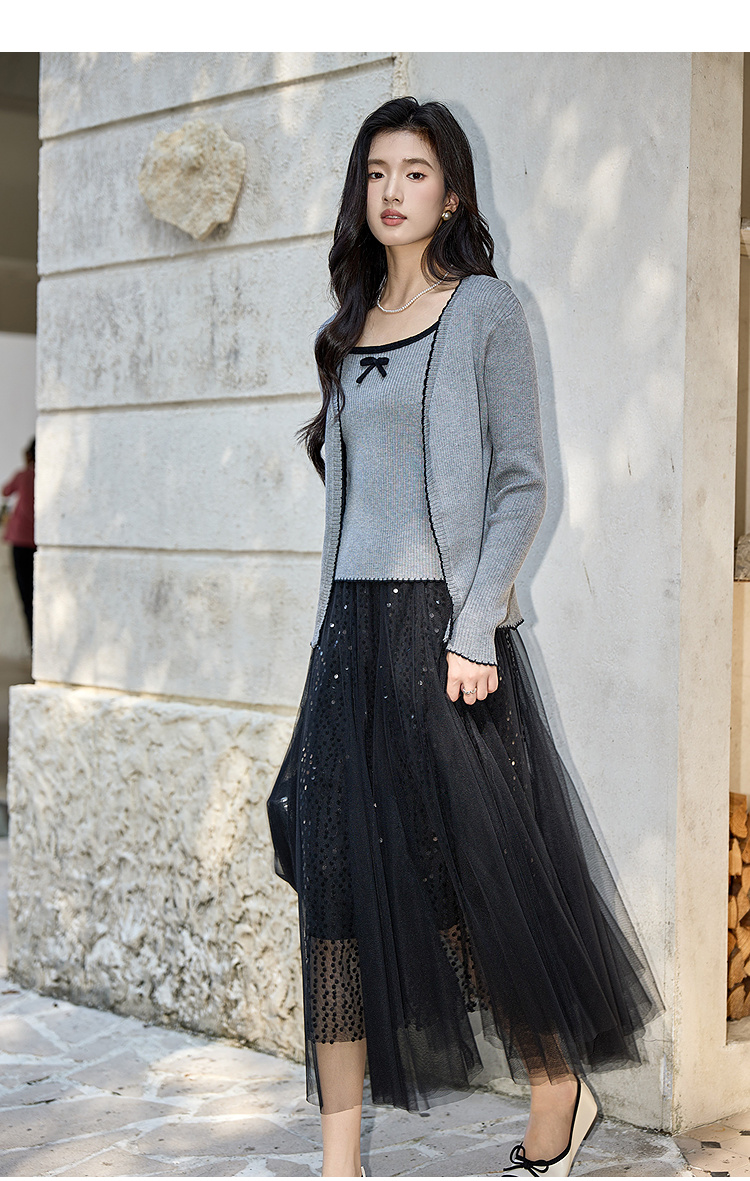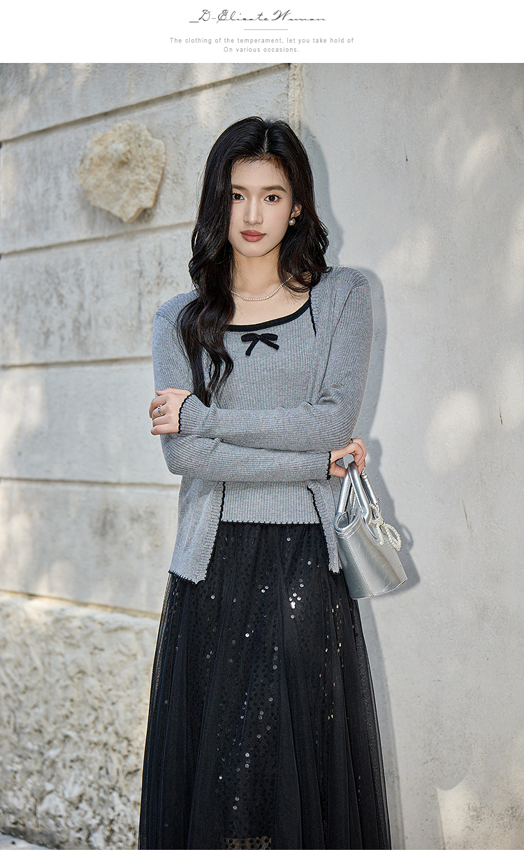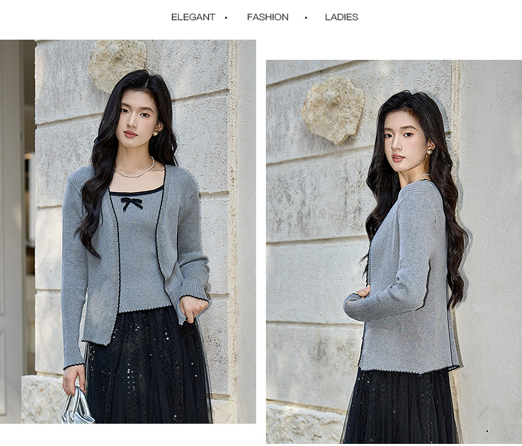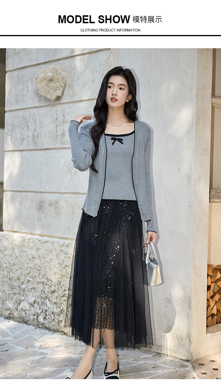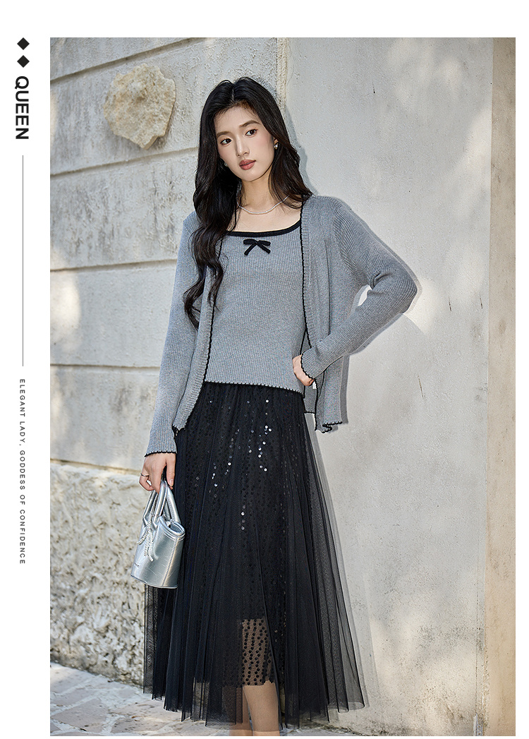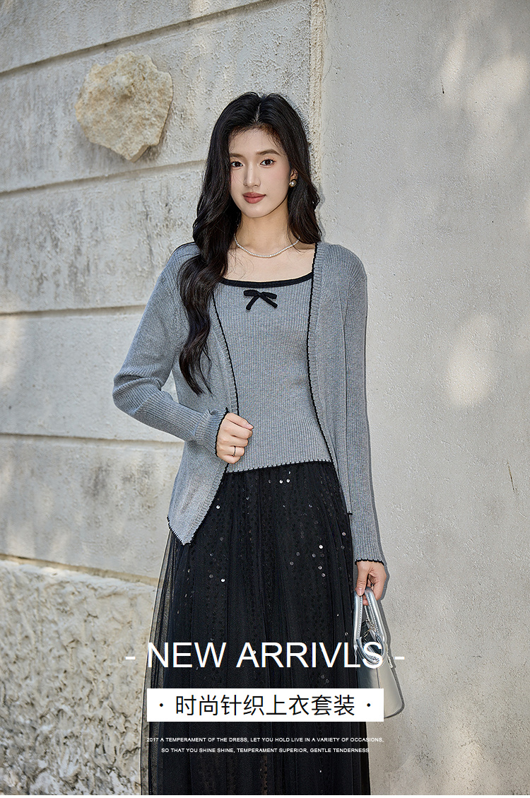 奢姿大码女装2025秋季减龄蝴蝶结针织两件套胖妹妹时尚上衣套装9653953687AB