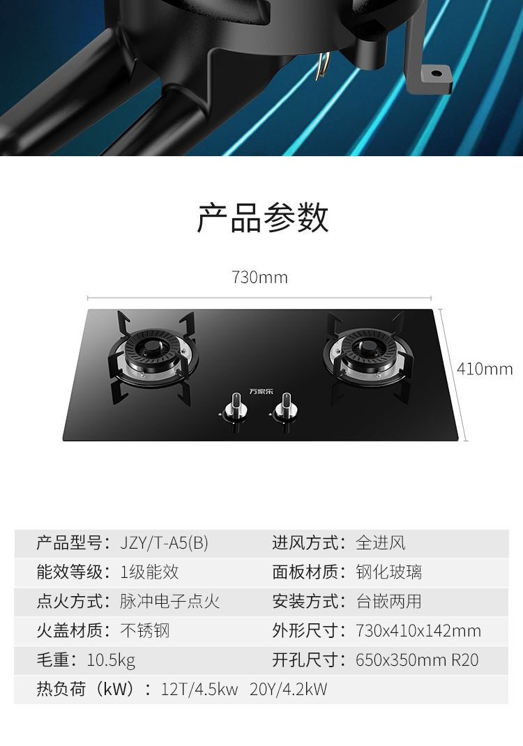 万家乐燃气灶 玲珑火 易清洁 童锁保护 JZT-A5(B)【线下同款】