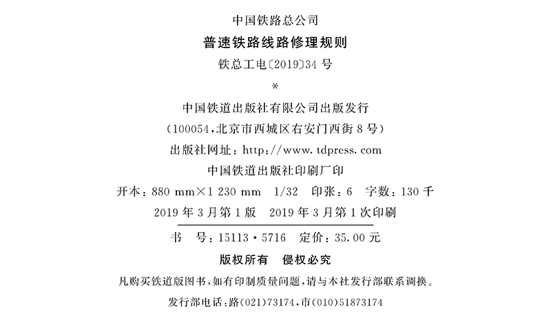 5716 普速铁路线路修理规则 TG/GW102-2019