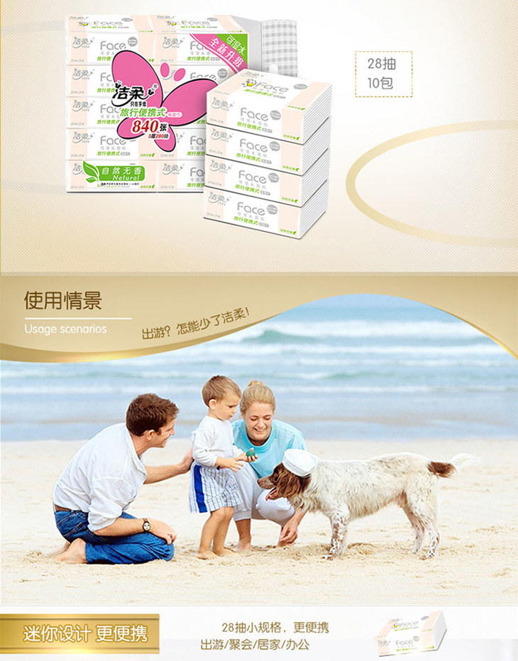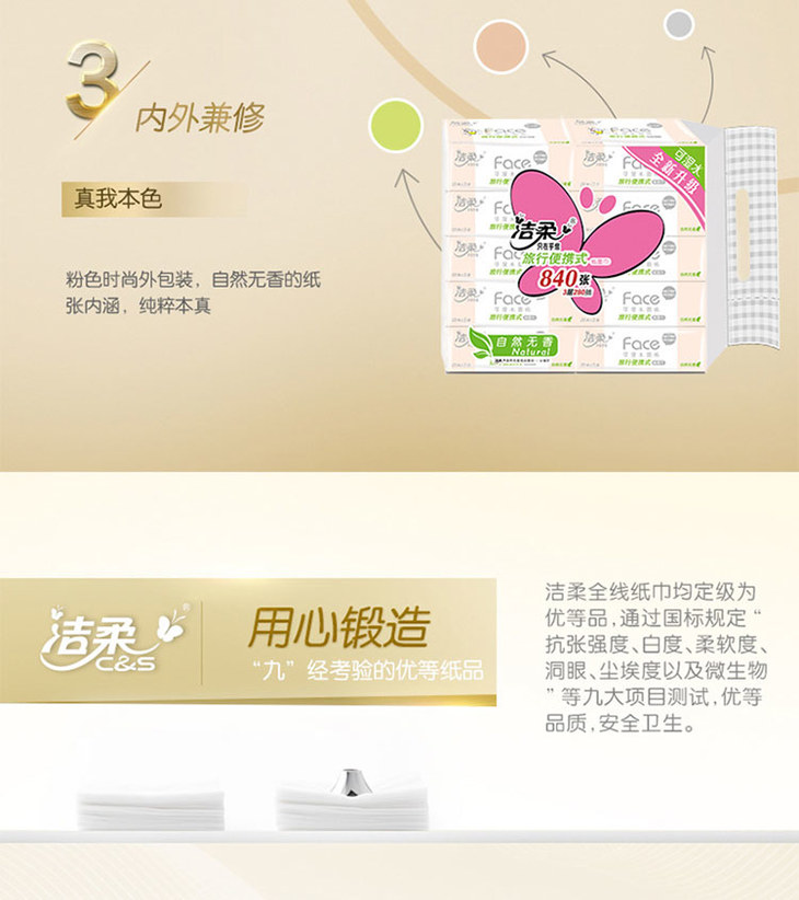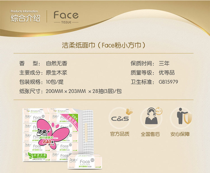 洁柔Face(粉色)天然无香28抽3层迷你抽取式纸面巾(10包装)