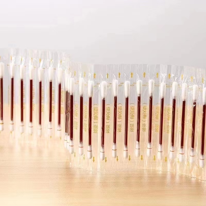 胶管内的碘伏液就被吸入了下端的棉签头