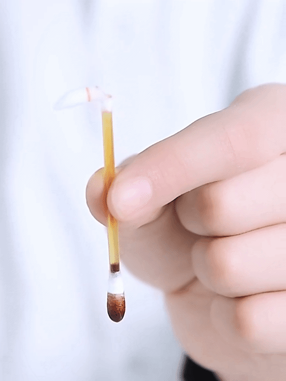 取出一根棉签先把橙线一端朝上