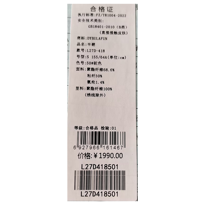 戴布拉芬半裙L27D418