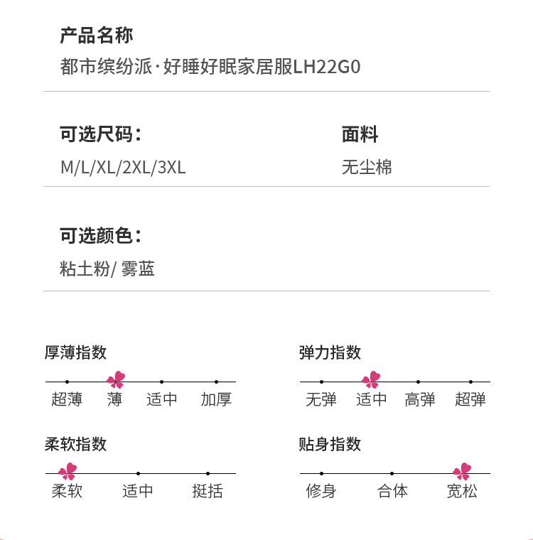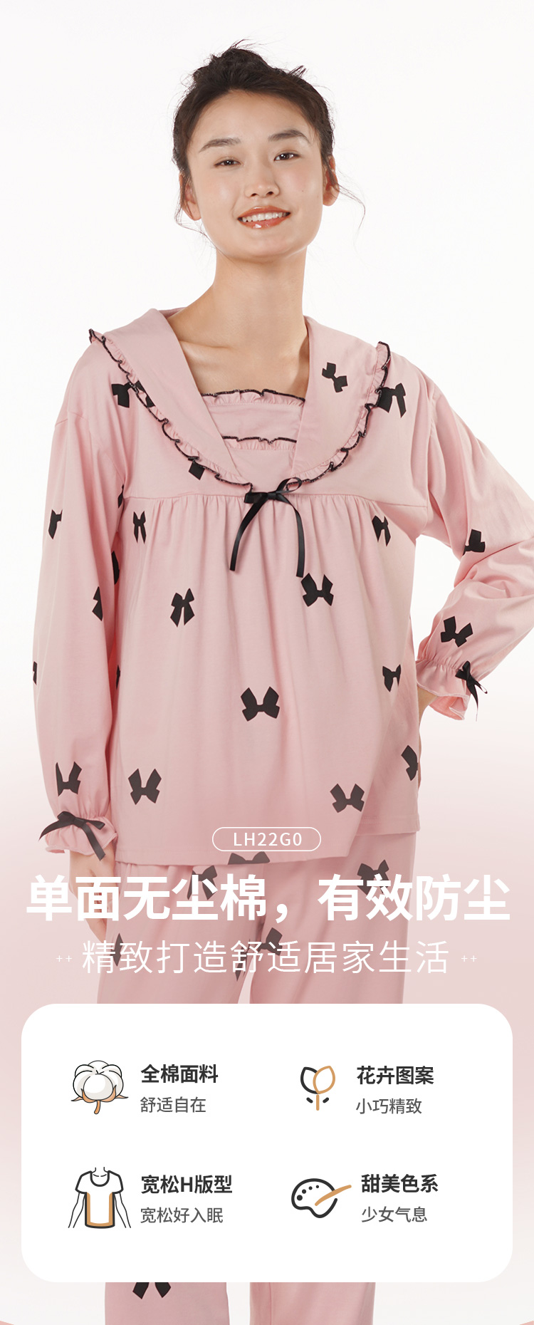 都市丽人生活家居棉质套装无尘棉单面薄家居服长袖睡衣LH22G0