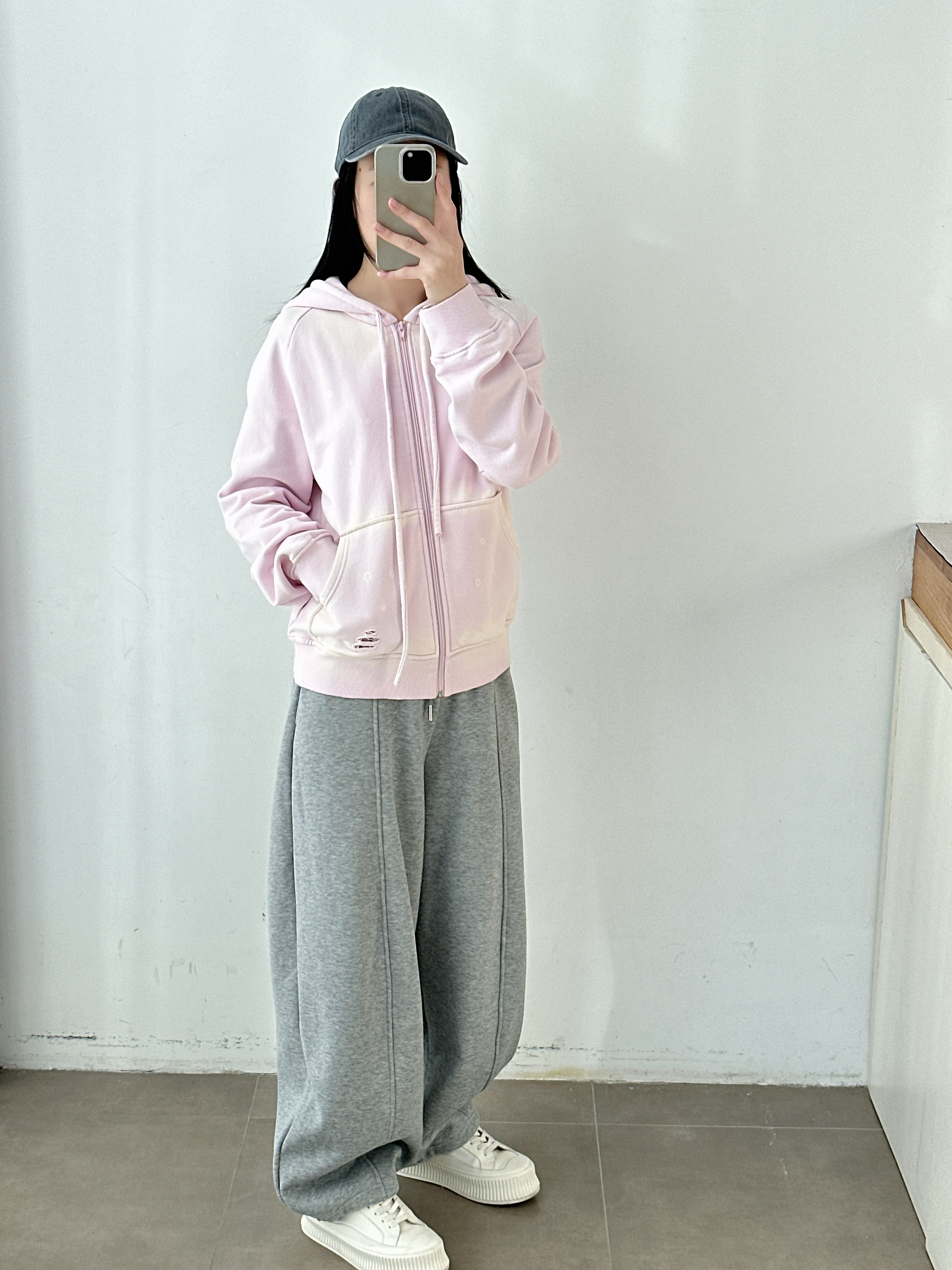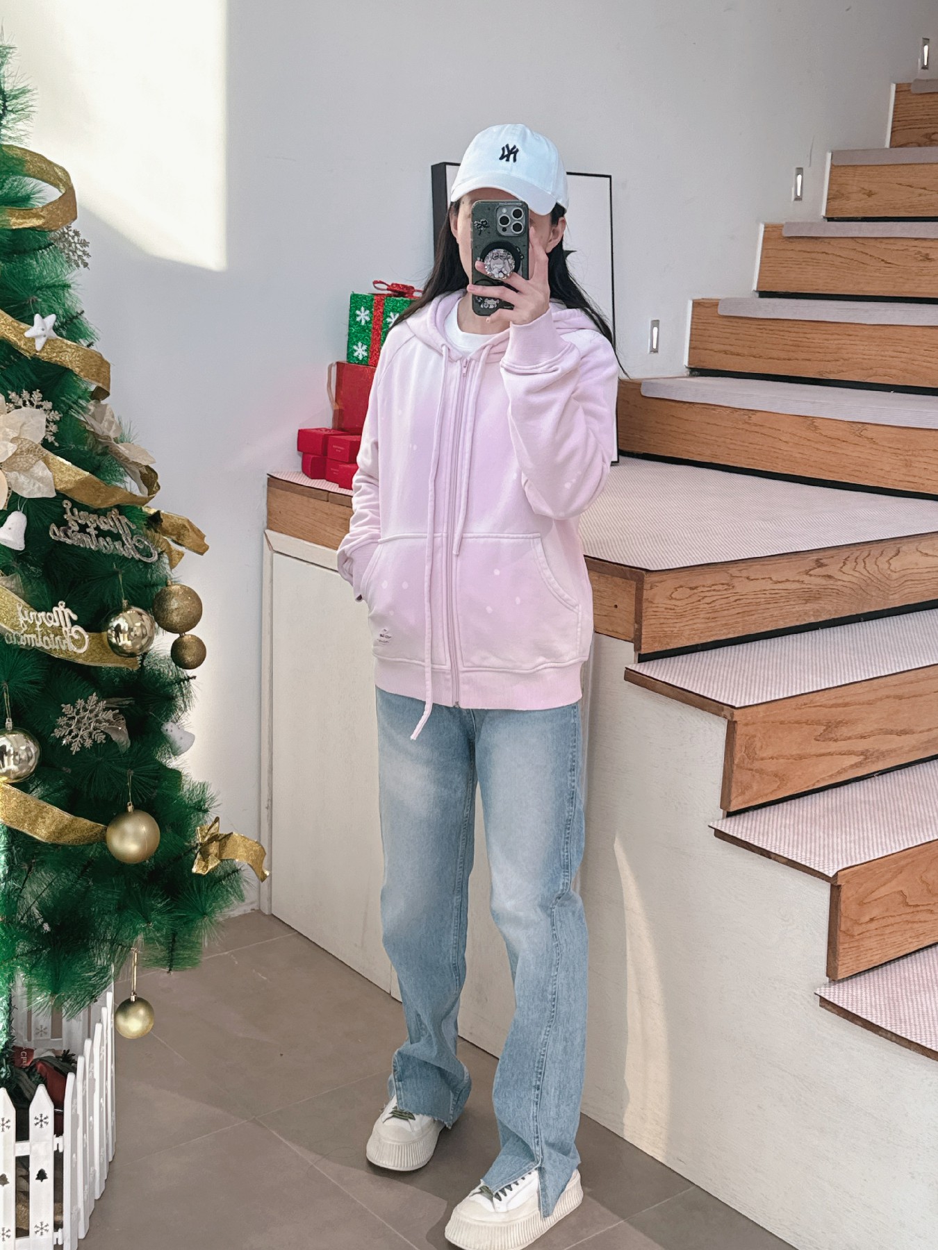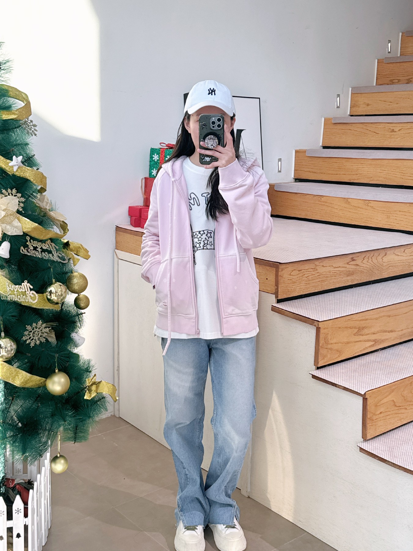 2025春季新款粉色减龄连帽卫衣高级感盐系做旧宽松上衣