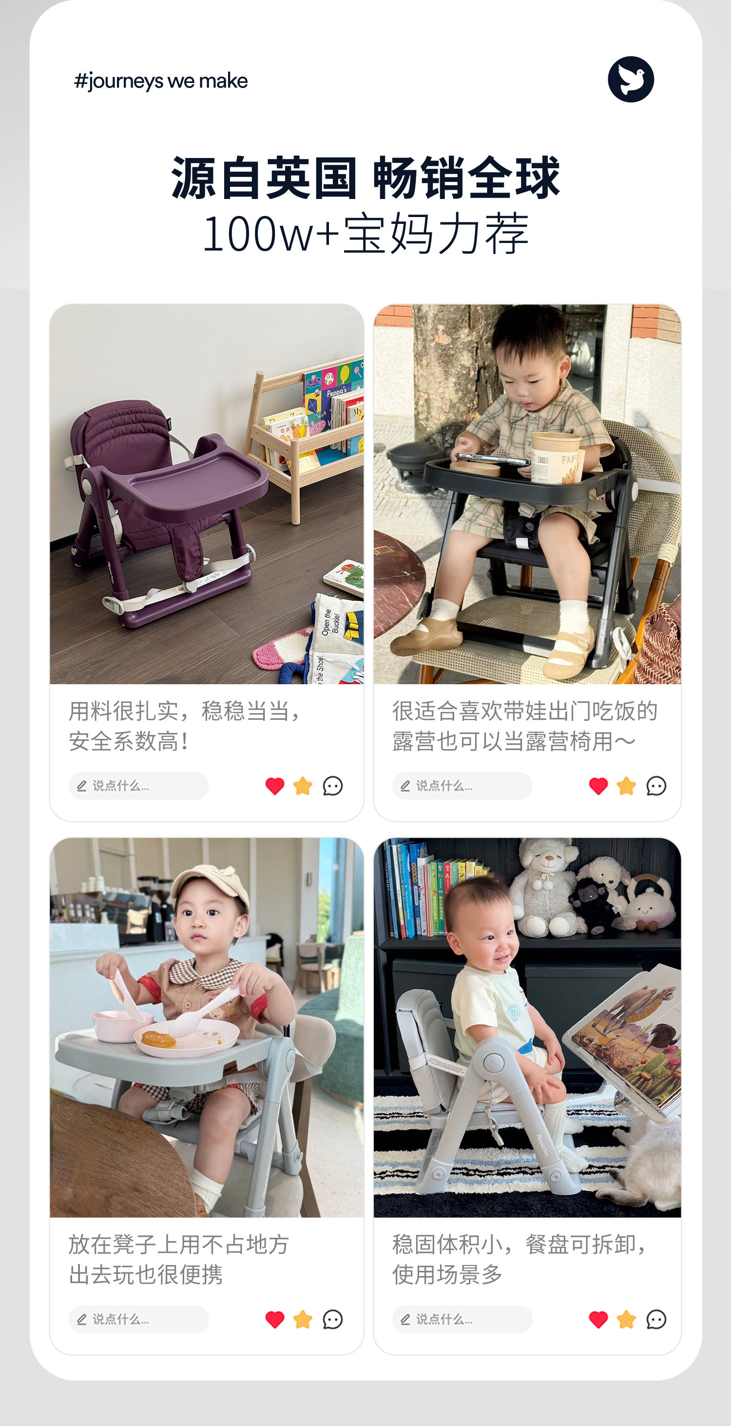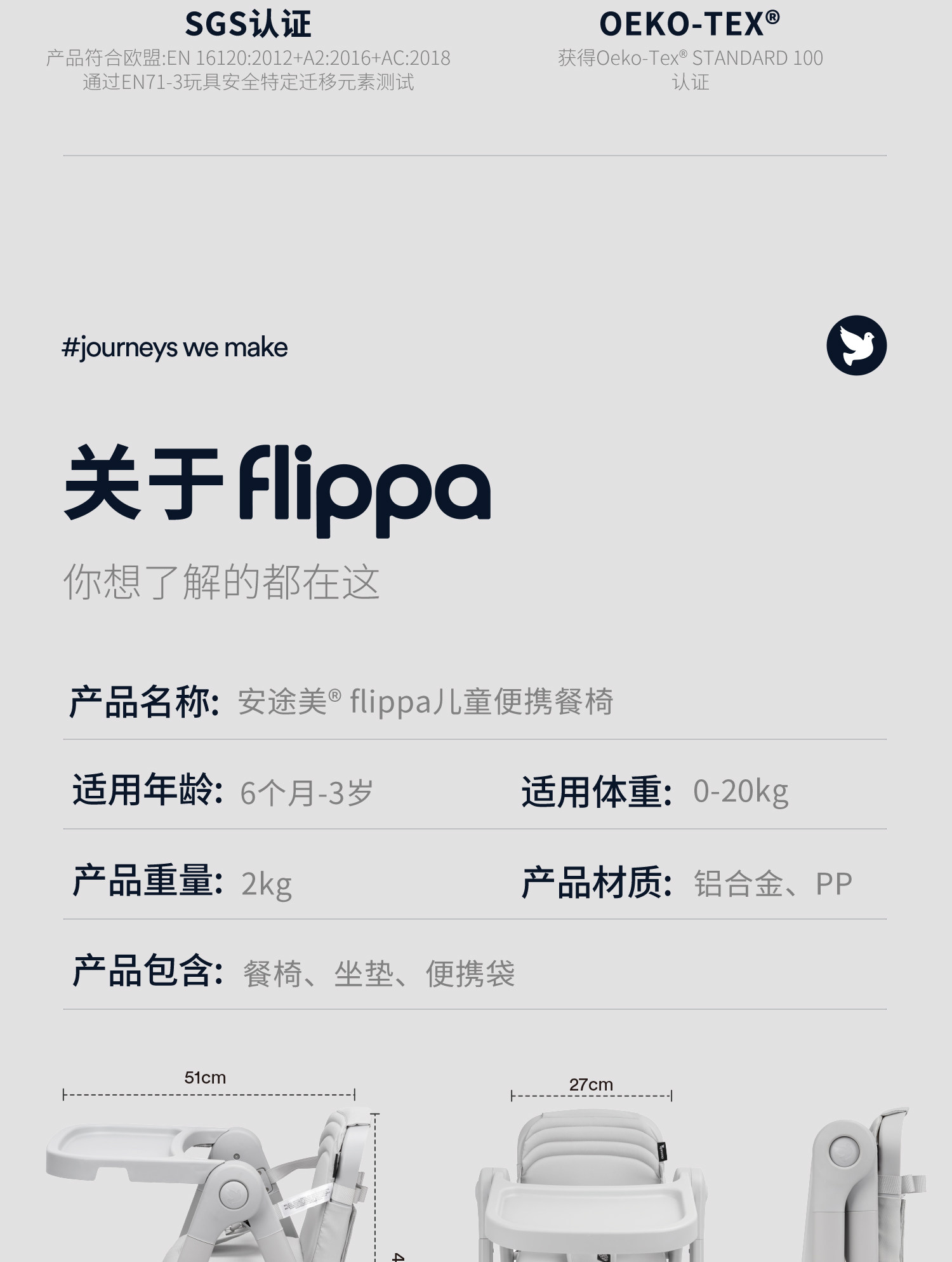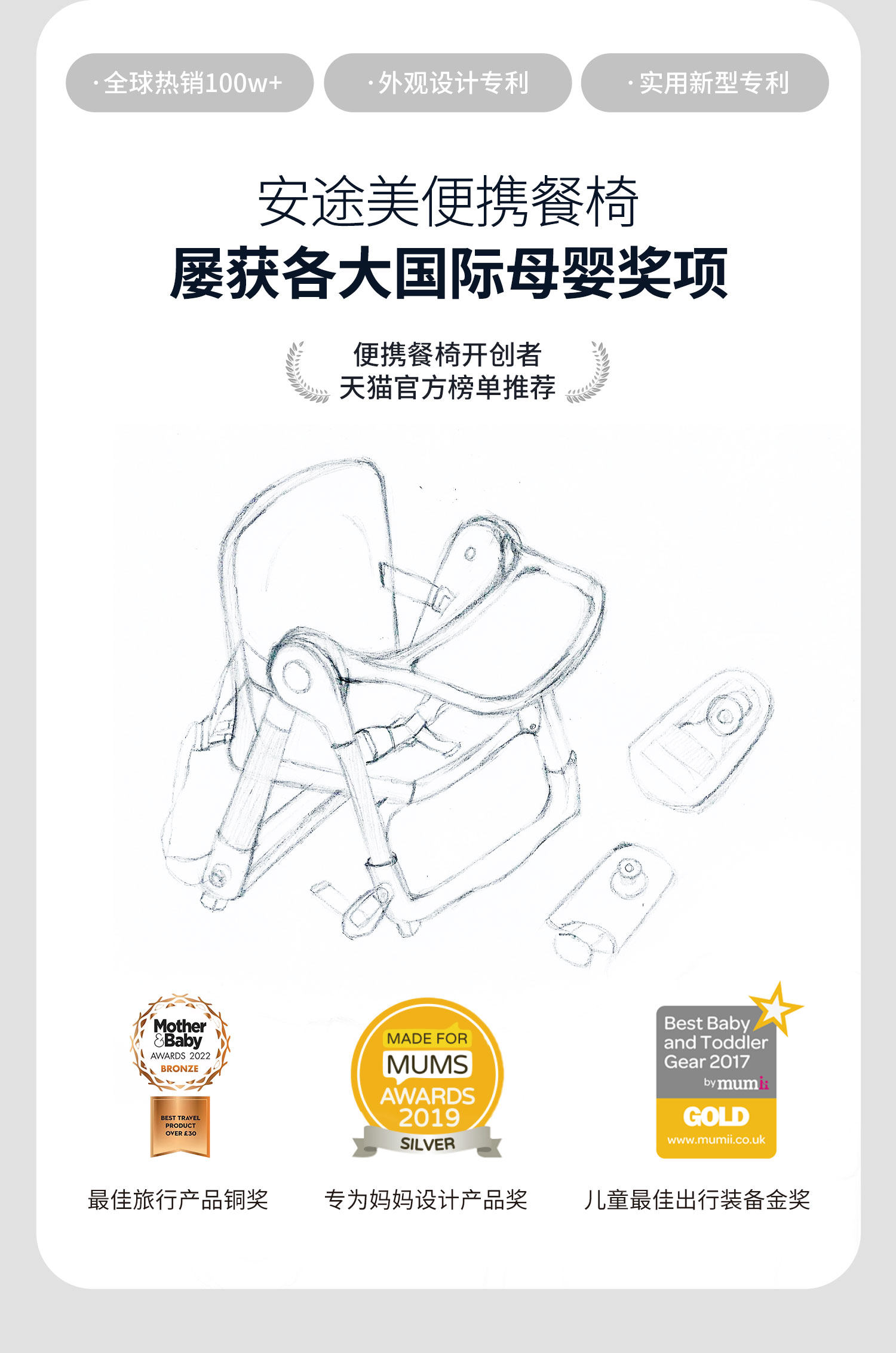 Apramo安途美Flex升级版宝宝儿童便携式可折叠餐椅外出吃饭露营