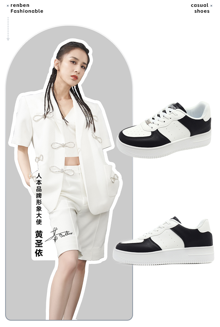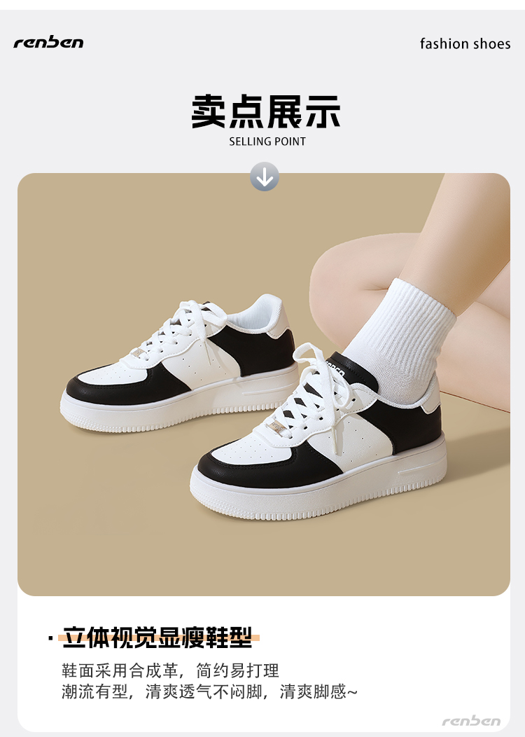 分销【人本春季鞋】人本板鞋女2026春秋新款厚底小众百搭运动轻便跑步舒适复古休闲鞋 RB-S0092516