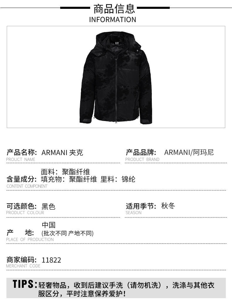 Armani EA7 男士运动休闲保暖防寒夹克/棉服外套 11822