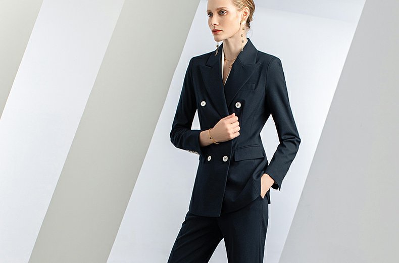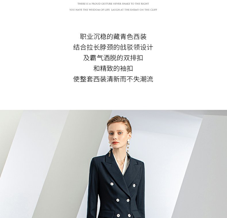 IWY/藏青色修身 秋冬职业装西装套装女时尚气质双排扣商务正装OLC10433+P10433