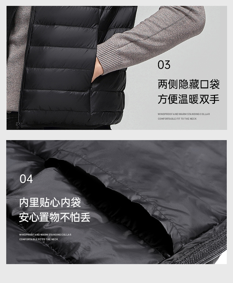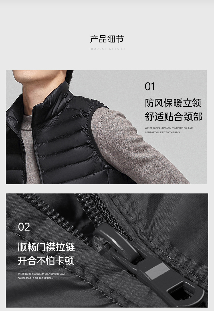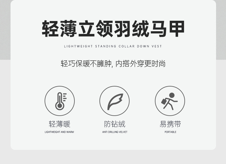 【轻薄立领羽绒马甲】防钻绒马甲白鸭绒无袖羽绒外套Y307