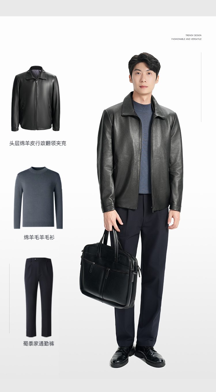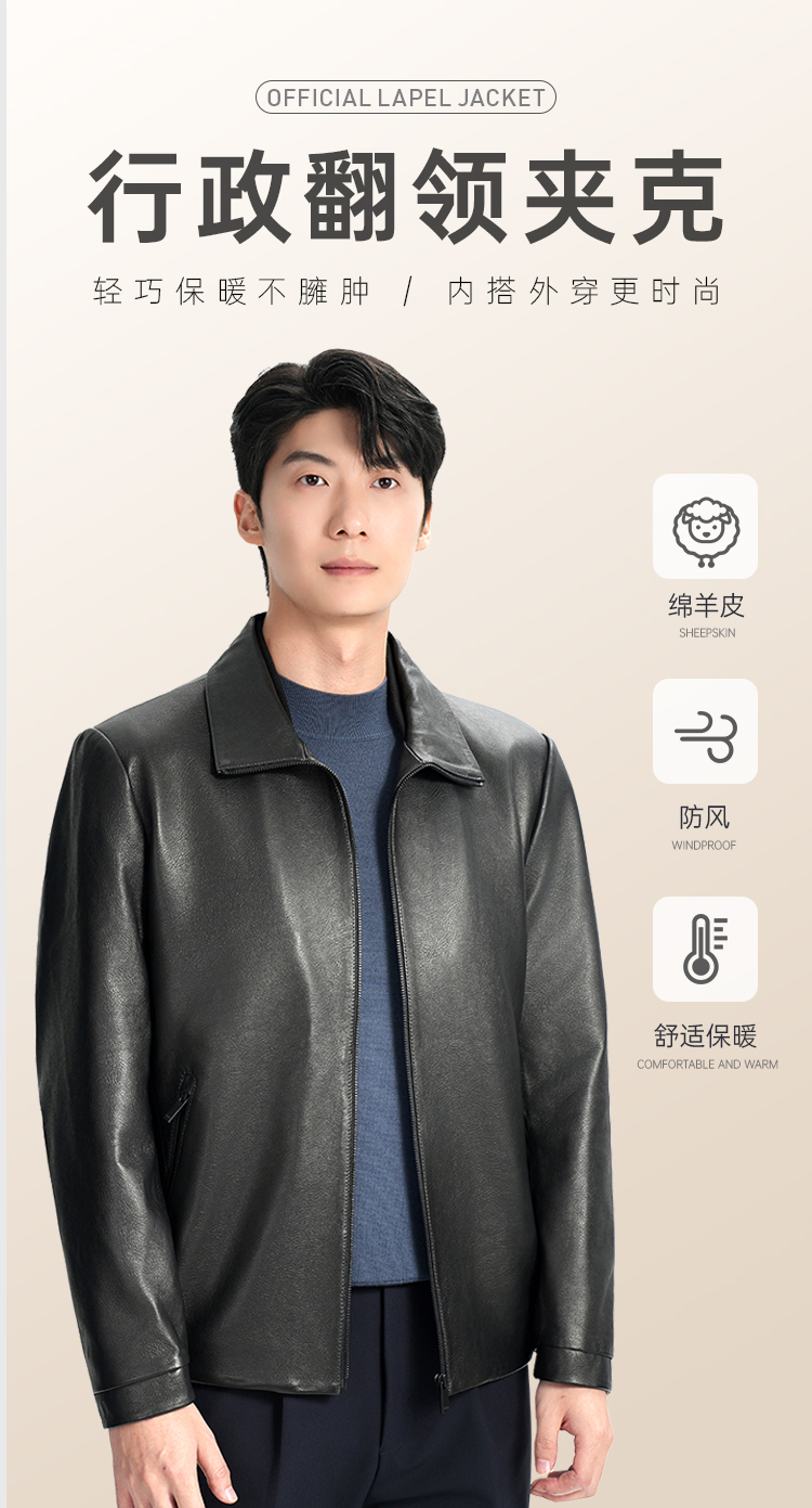 【实付满399送保温杯】【头层绵羊皮商务翻领夹克】翻领通勤外套防风保暖皮衣夹克