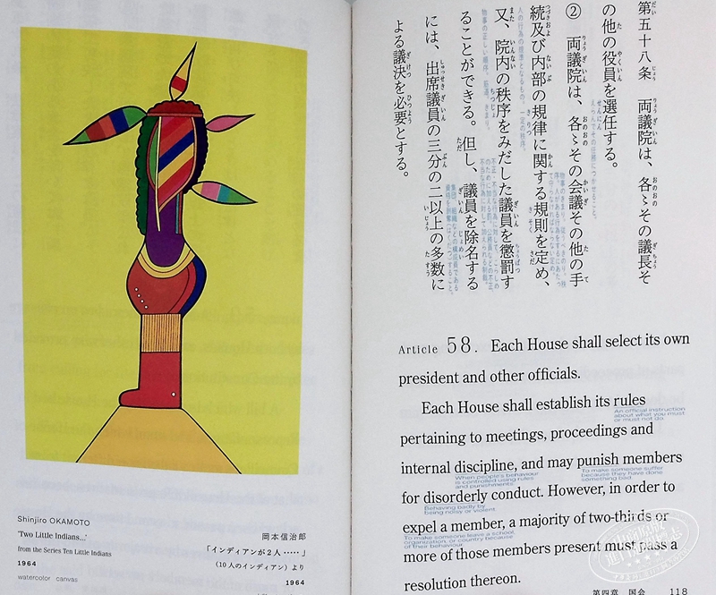 憲法をたっぷり感じられる!戦後芸術のマスターピース69作品を選出。全103条を1条ずつ見開きでゆったり掲載。総ルビ、注釈つき本文、英文を大きく併記。和文+英文+図版で楽しく深く味わえる!