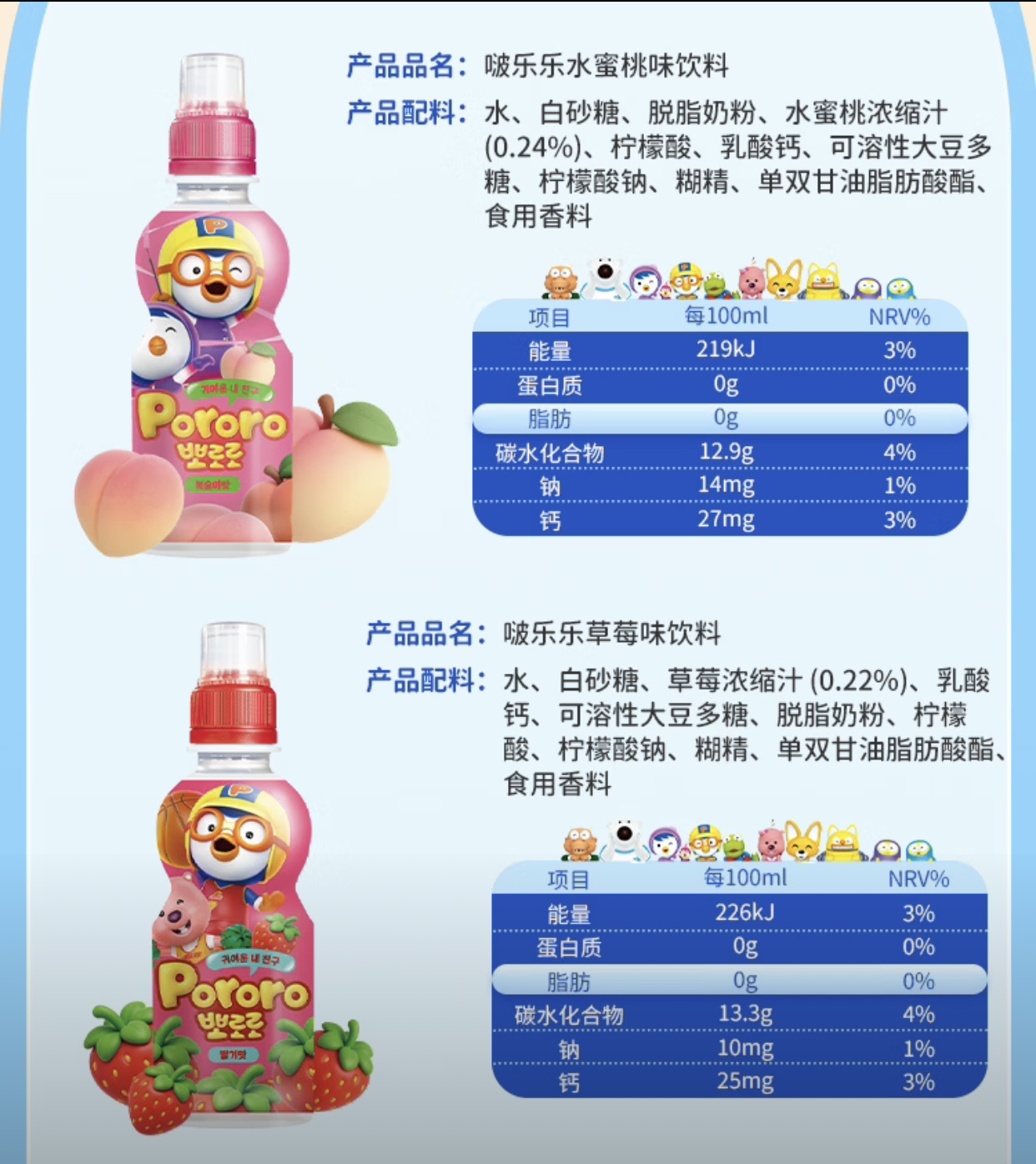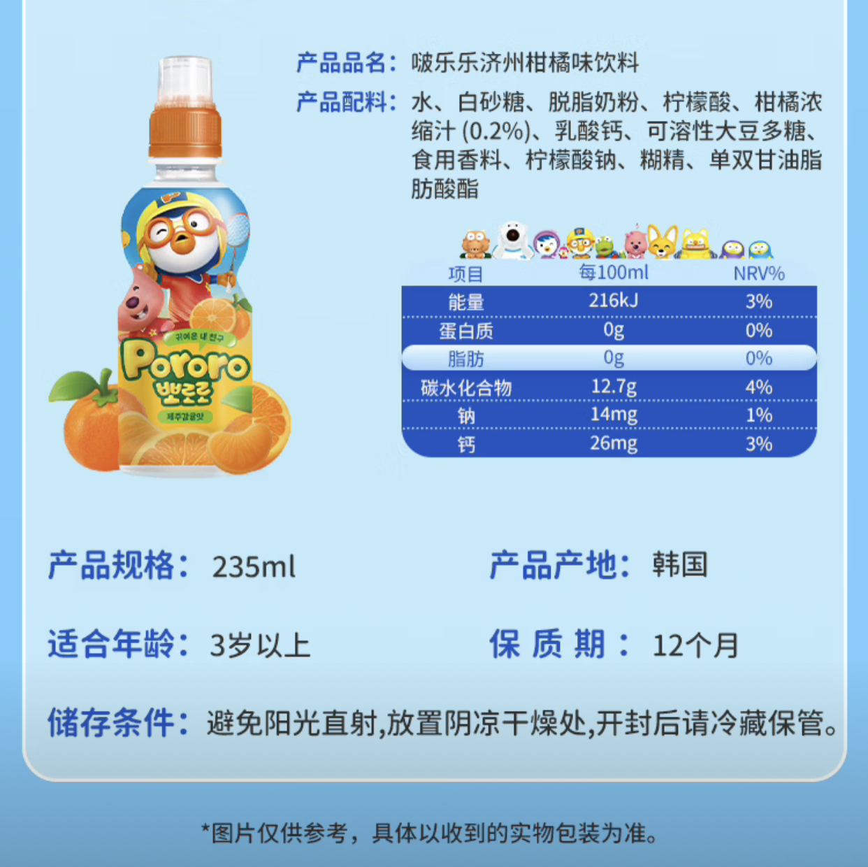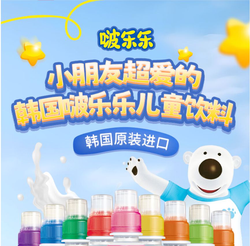韩国儿童饮料啵乐乐果味系列饮料235ml 多种口味随心选择口感顺滑清新 023912/021633/023192/023193/023725/021635