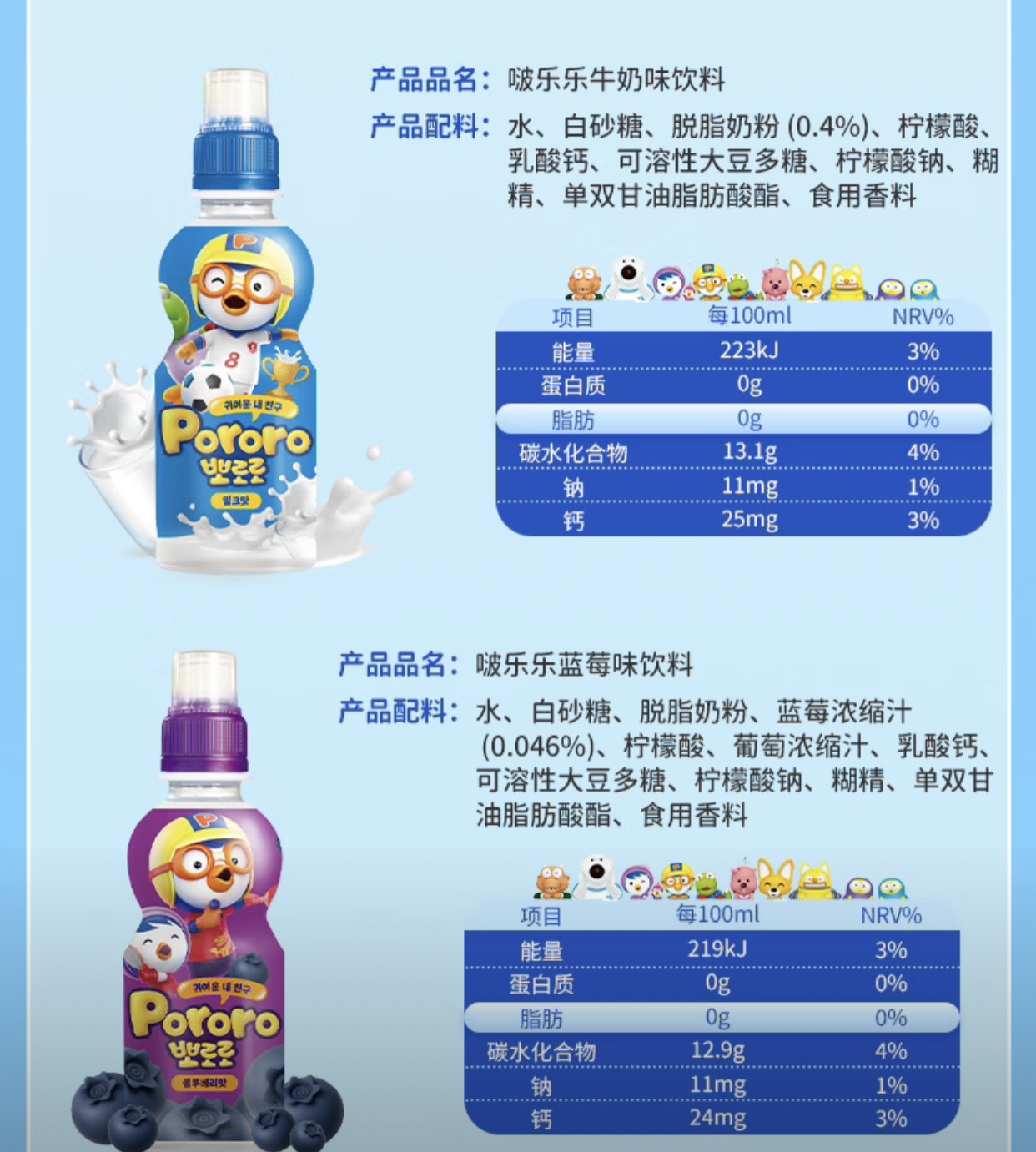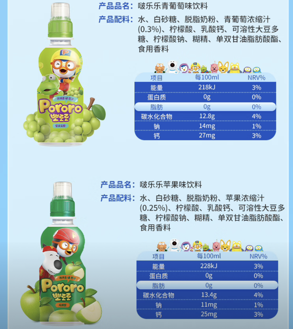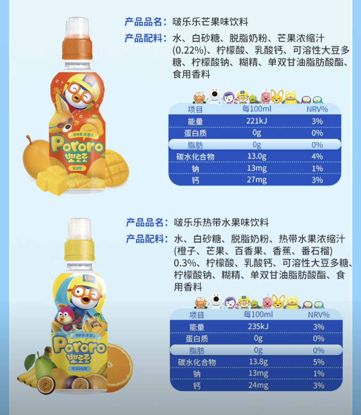 韩国儿童饮料啵乐乐果味系列饮料235ml 多种口味随心选择口感顺滑清新 023912/021633/023192/023193/023725/021635