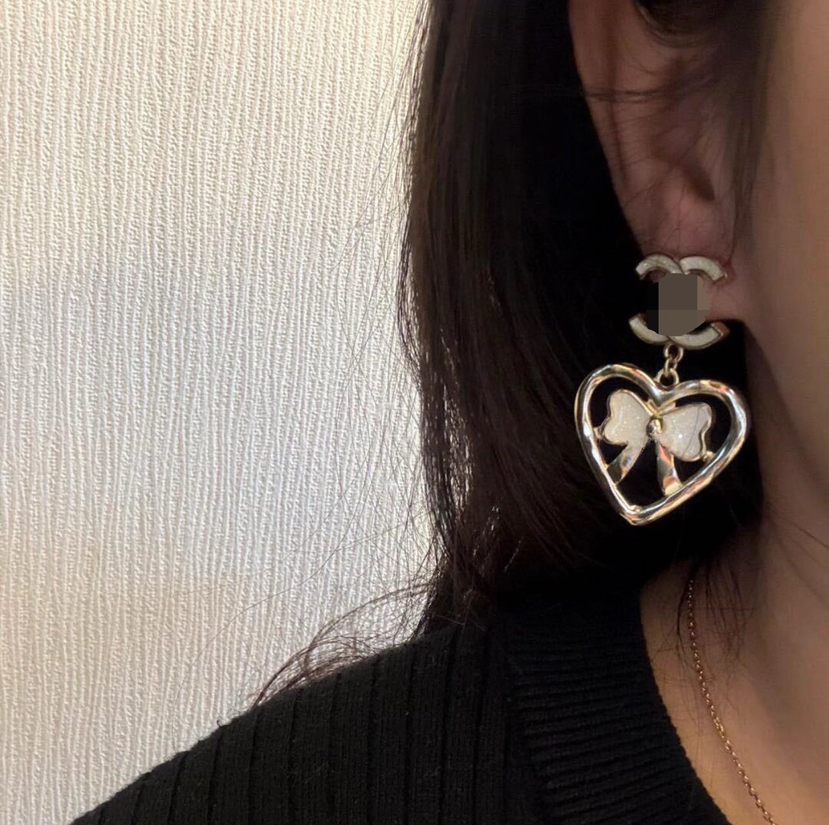 523-6 真香老渠道 珐琅蝴蝶结 镂空爱心吊坠 双C 耳环