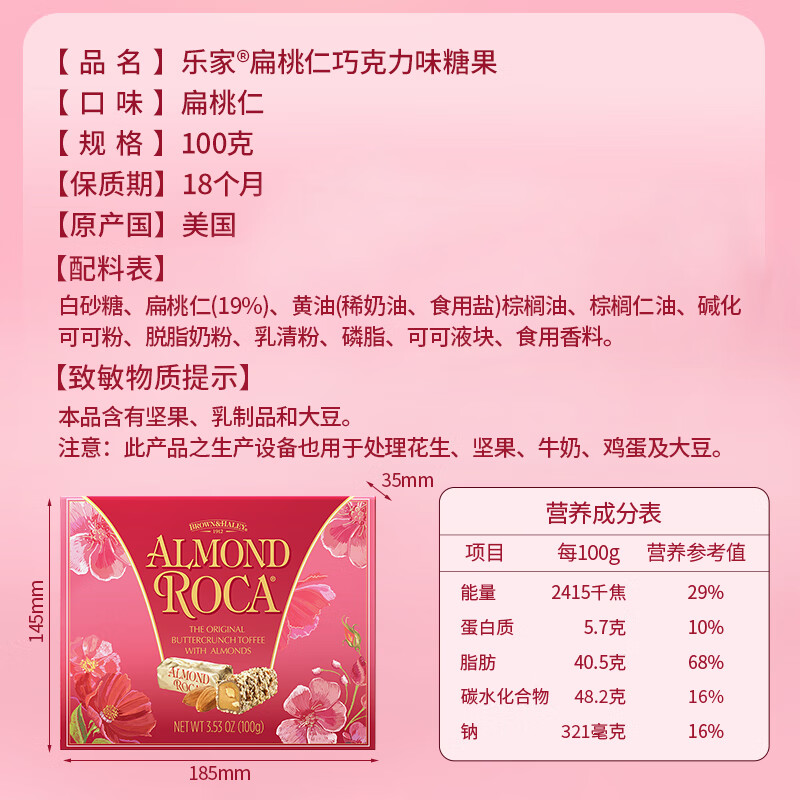 美国乐家扁桃仁巧克力糖果100g 新老包装随机乐享酥脆一口难忘 060462