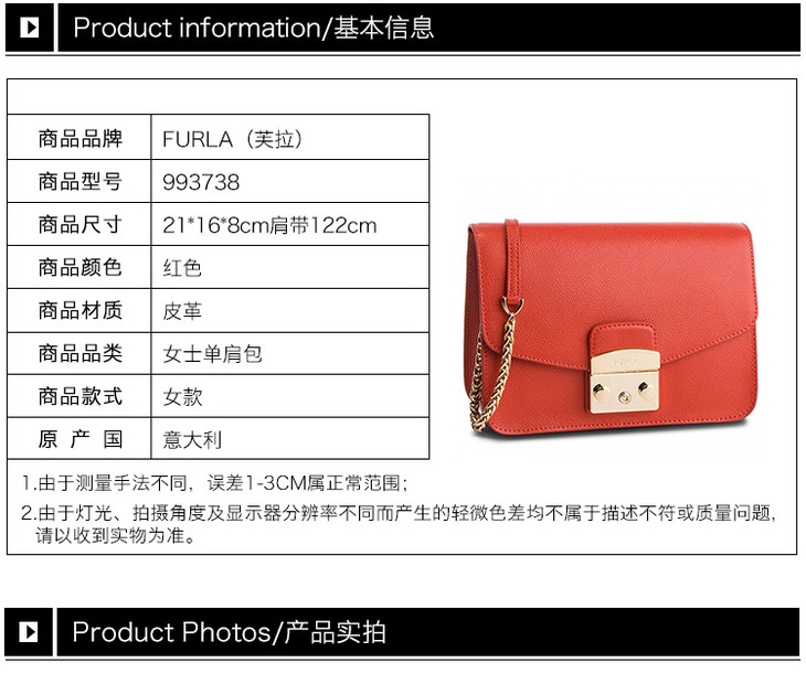 【香港直邮】·Furla 芙拉 女士红色手提单肩包 993738