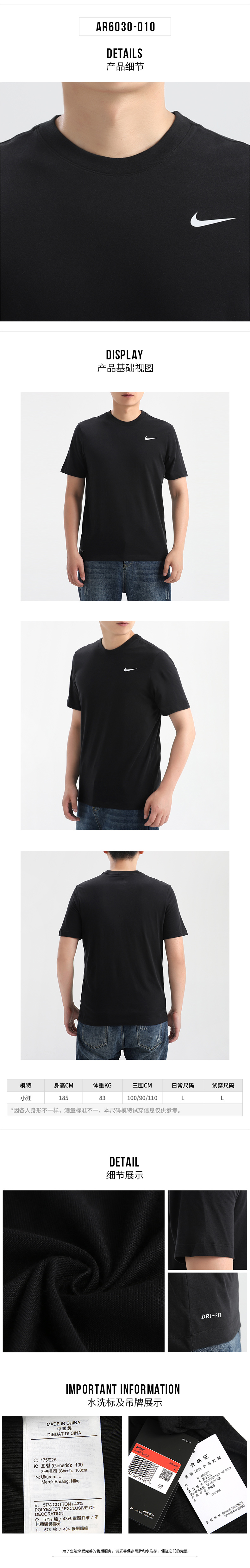 NIKE健身衣男短袖 2022夏新款运动休闲舒适半袖健身紧身简约跑步T恤男 AR6030-010