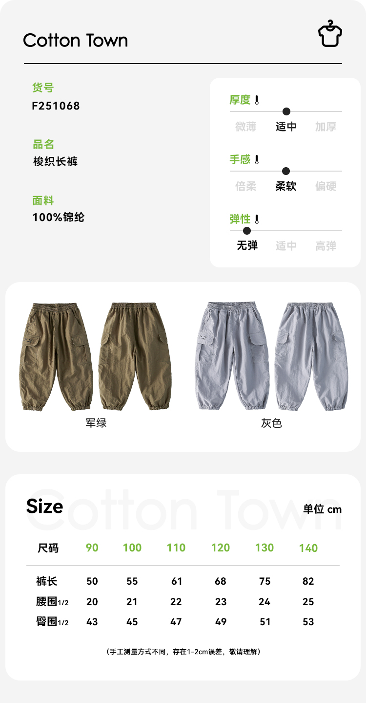 【大口袋】棉花堂2025年春款户外工装梭织长裤童装