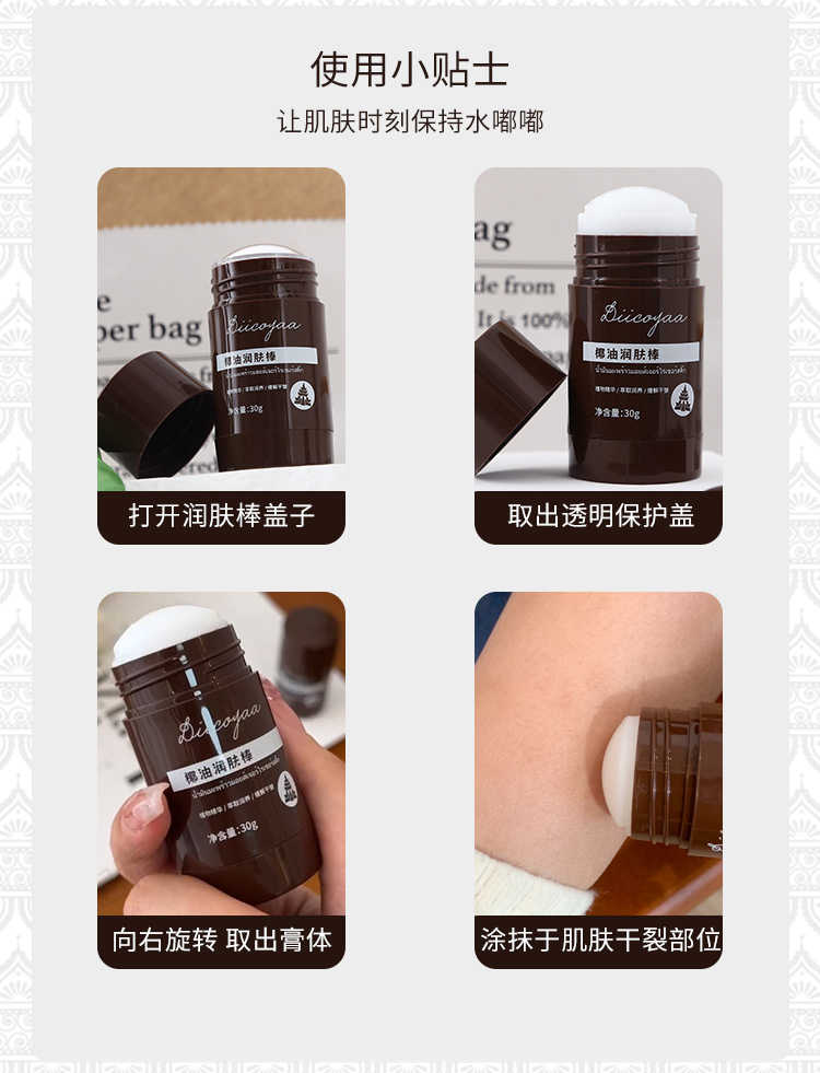 【一拧一涂,简单方便】DIICOYAA椰油润肤棒 椰子精粹舒润肌肤 肤感不油腻无惧寒风 30g/支