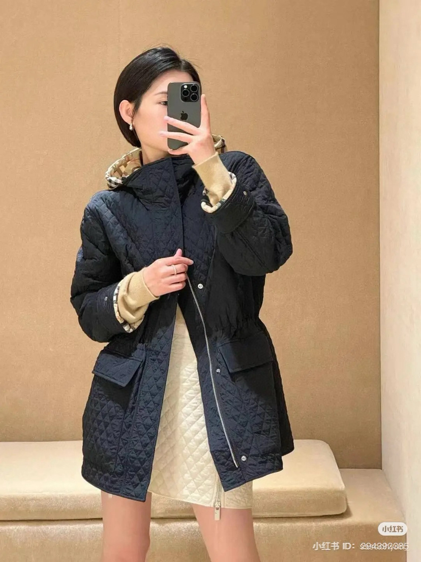 经典好穿又辨识度高,最新收腰风帽经典格纹中长款,非市场中铺天盖地的奥莱打折款,最新款‼️