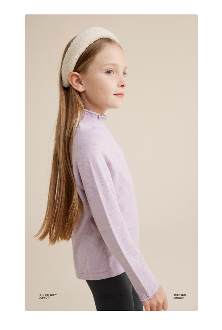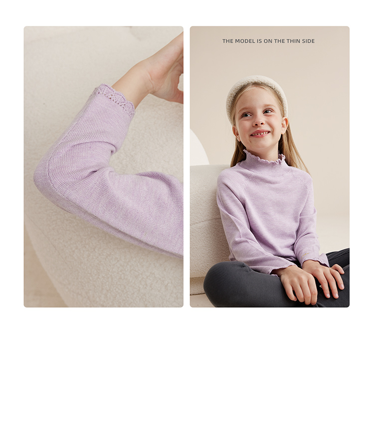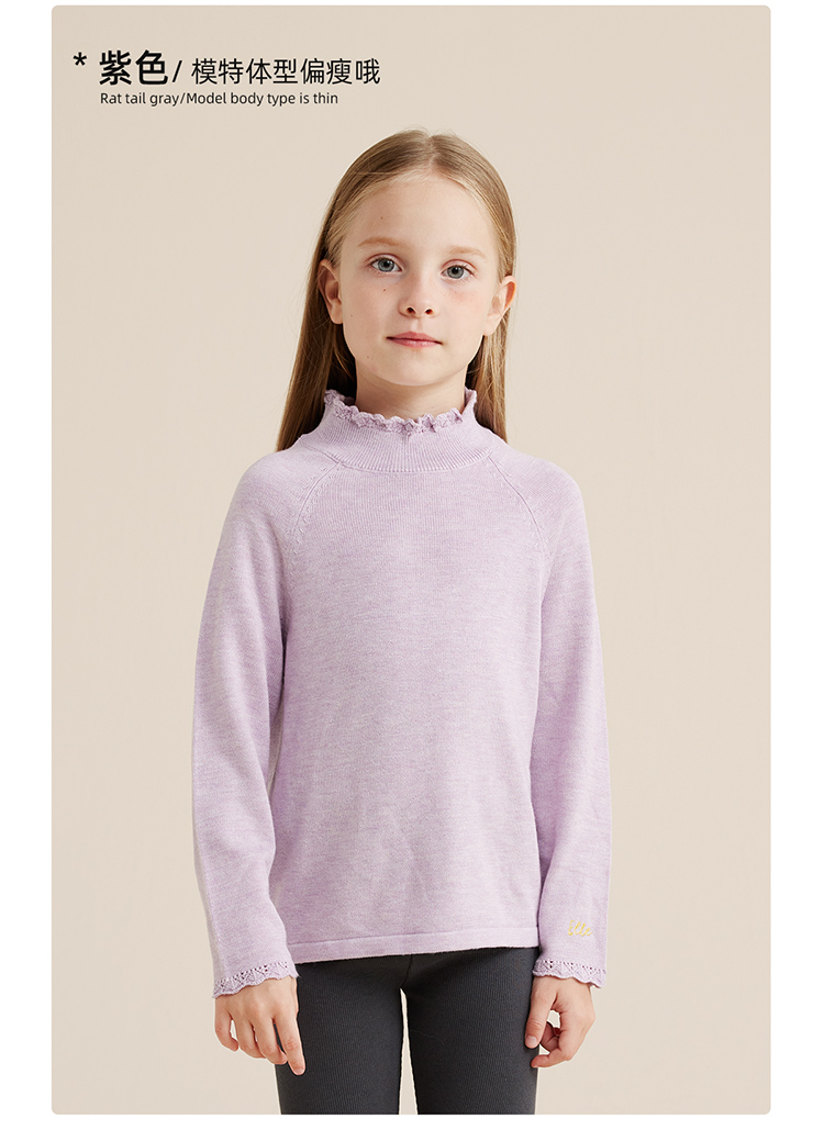 fx-【秋上新】【柔暖舒适羔羊绒】儿童花边高领百搭打底毛衣PQMY2315