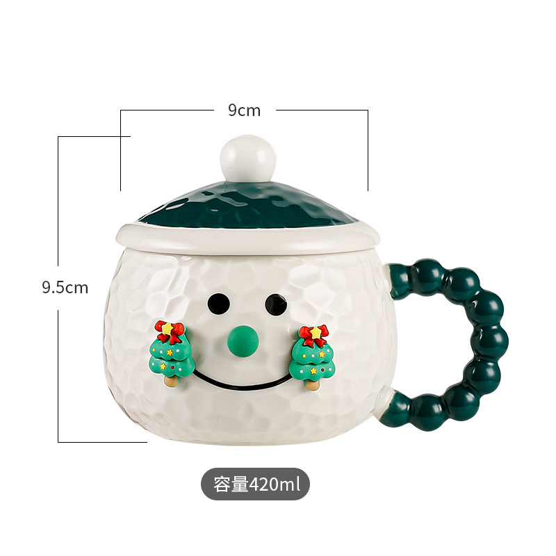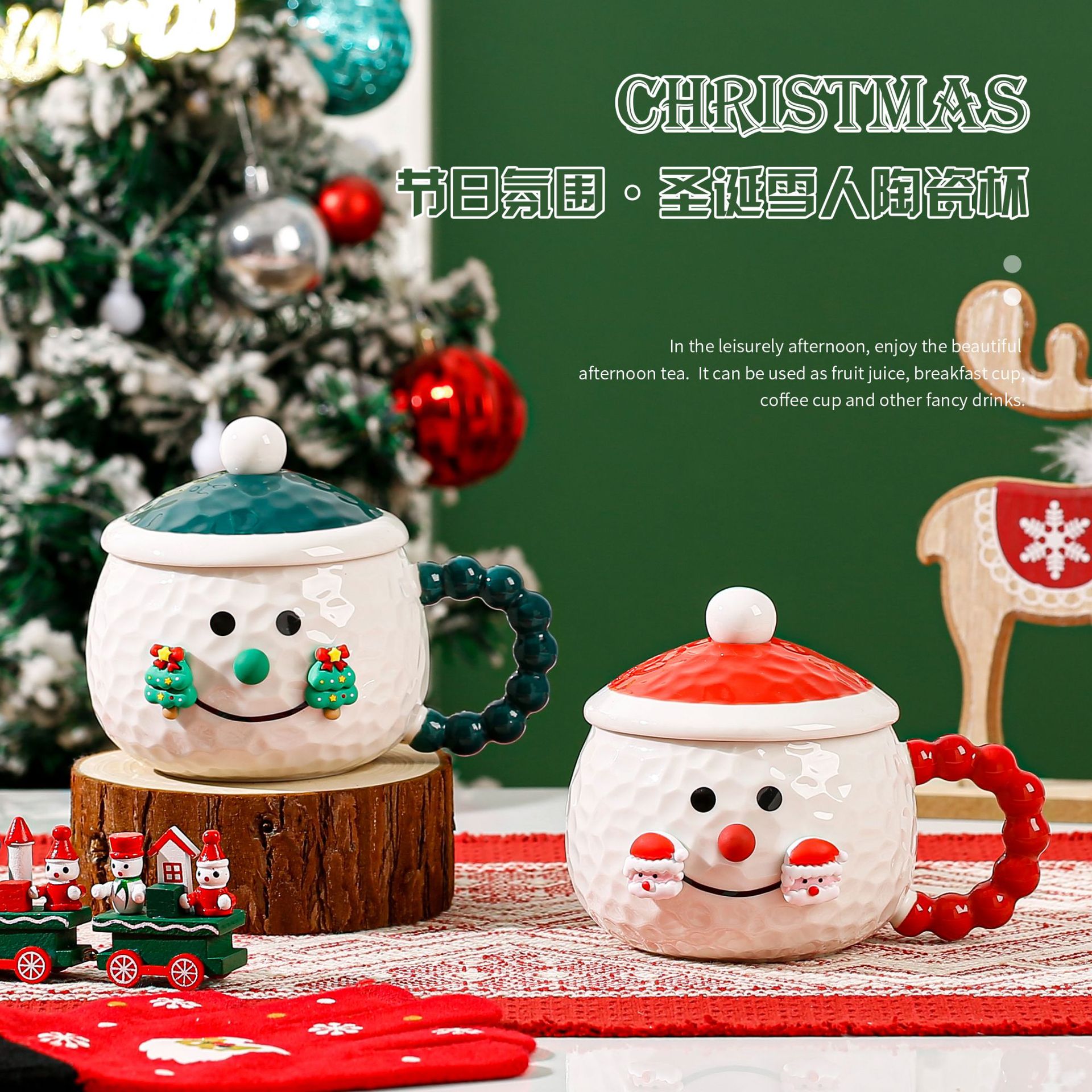 创意圣诞陶瓷杯马克杯带盖家用喝水杯高颜值圣诞节礼物礼品咖啡杯