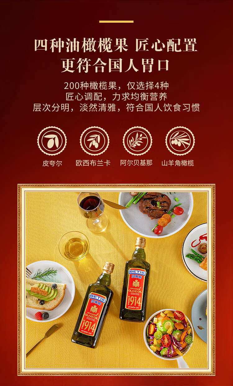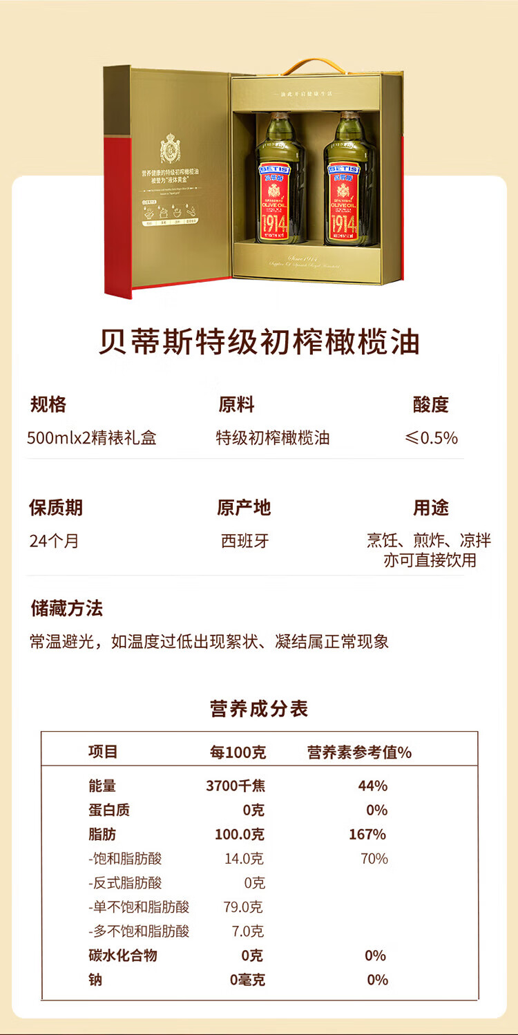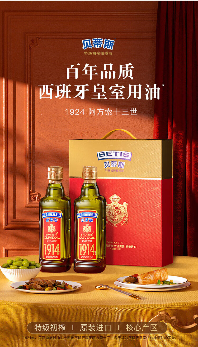 贝蒂斯(BETIS)特级初榨橄榄油500ml*2礼盒