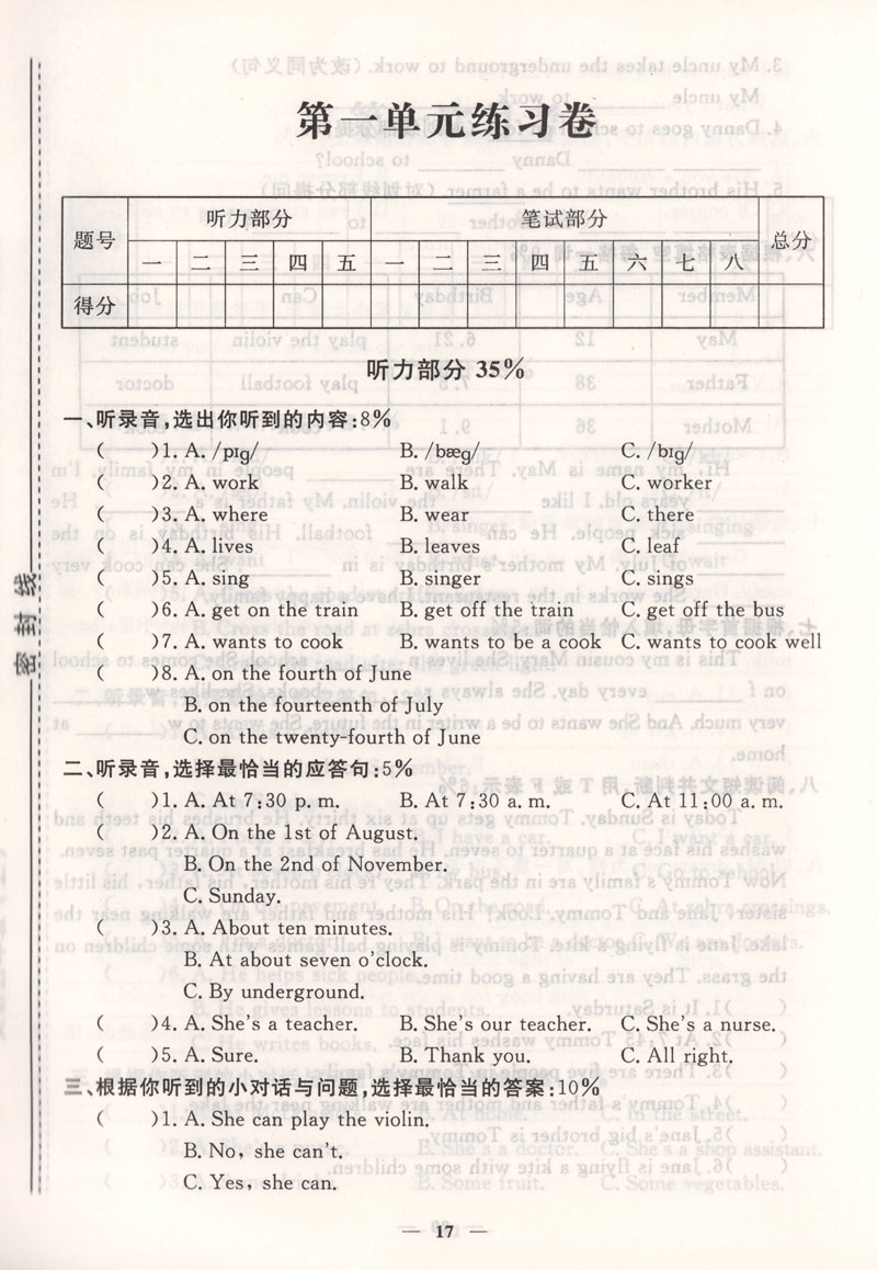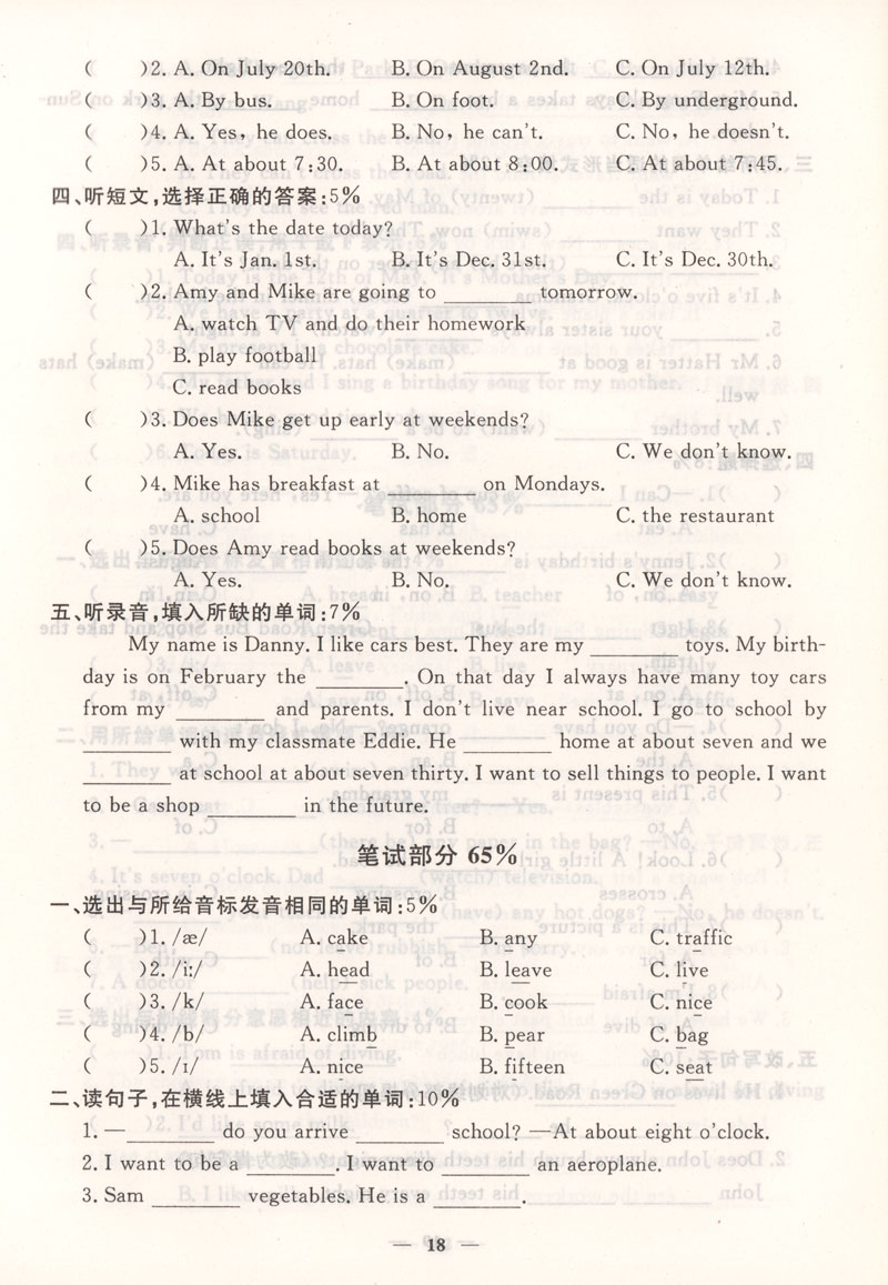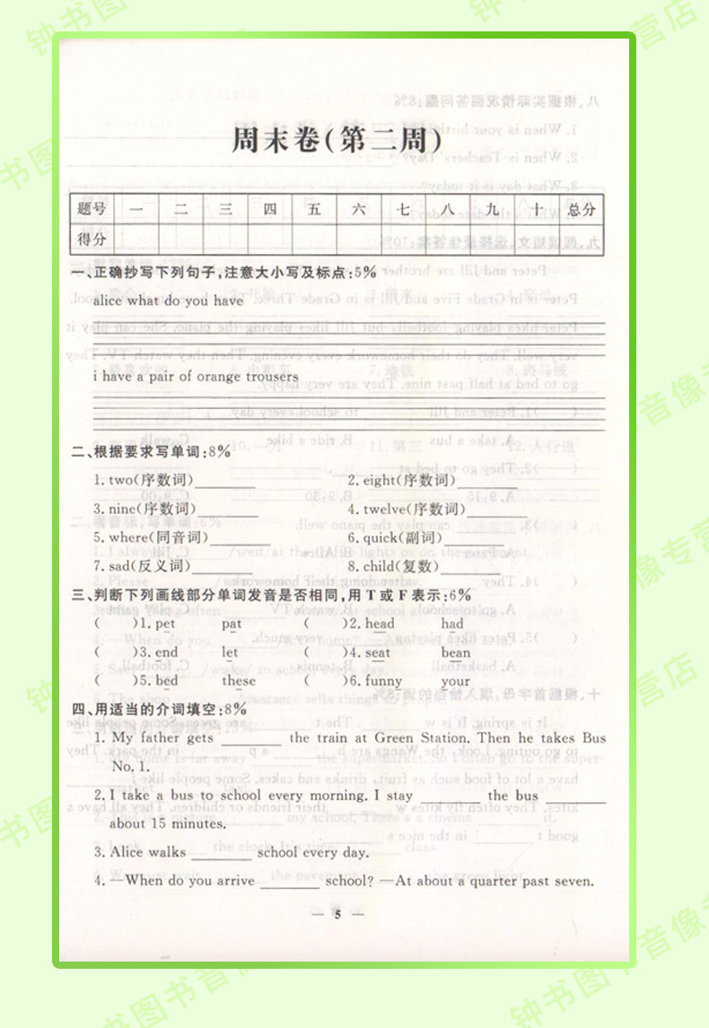 过关冲刺100分 英语 5年级/五年级上第一学期