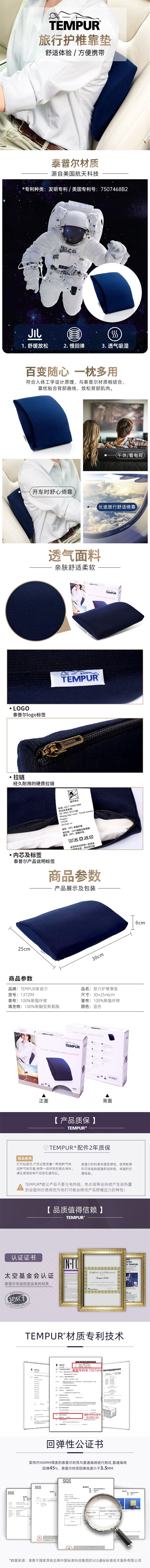 泰普尔 旅行护椎靠垫 蓝色 137299