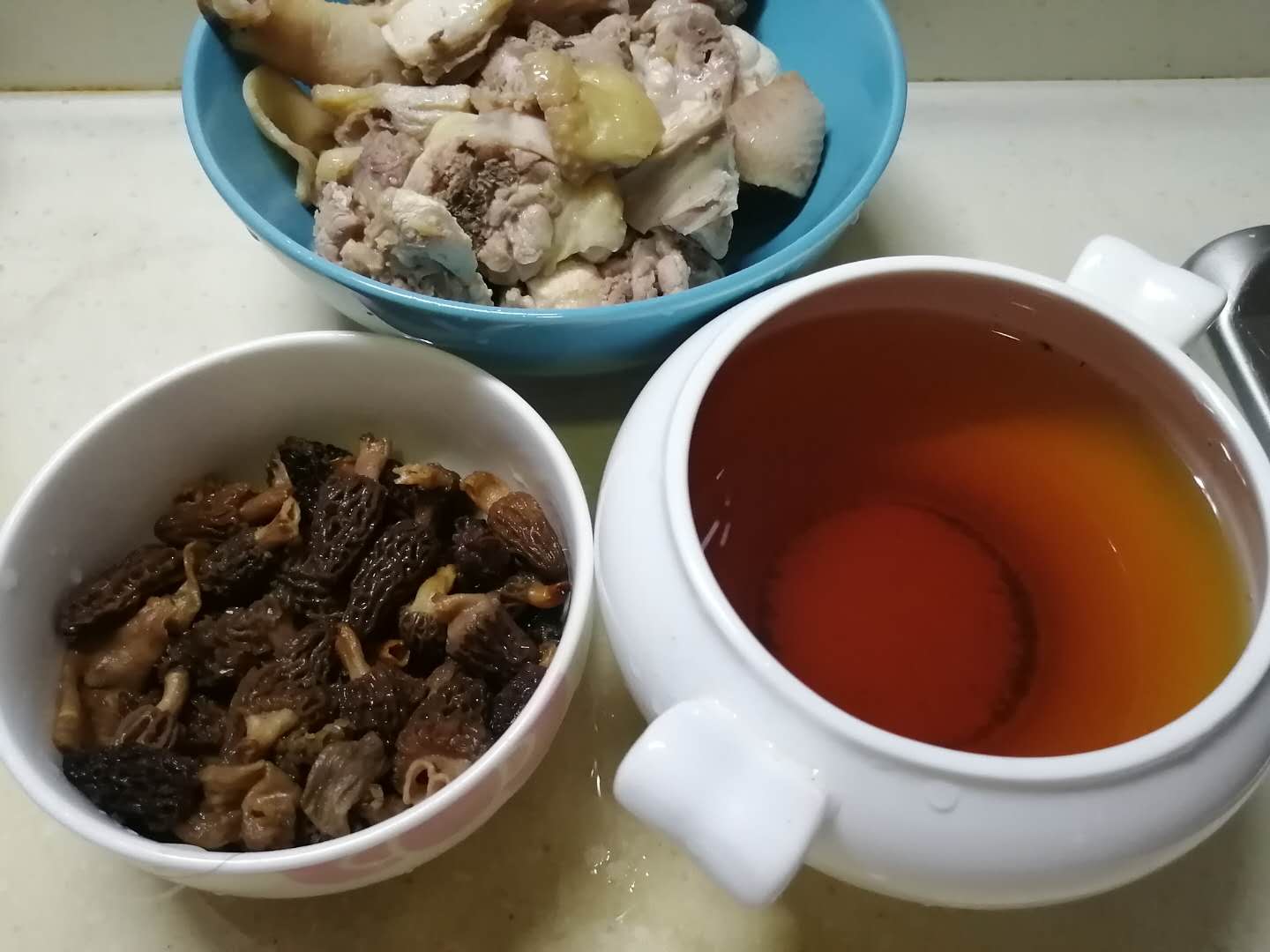 【关于泡发】泡发野生羊肚菌超级简单,50℃温水发泡10分钟即可,直接入锅与肉类一起炖上,发泡后的水静止10分钟后倒入锅中即可,一锅鲜美的菌汤锅就这么搞定了!