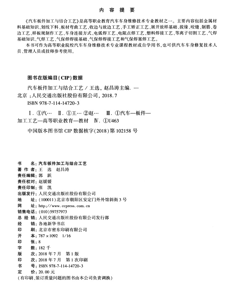 正版现货汽车板件加工与结合工艺高等职业教育汽车车身维修技术专业教材 人民交通出版社股份有限公司 王选 等编著