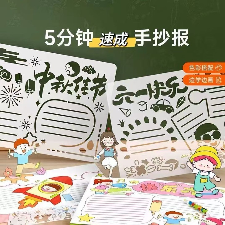 🤔我记得以前做手抄报作业超级麻烦☠️要设计版面,要画画,要写内容…… 对于不太擅长🎨美术的人来说真的很头疼,然而现在变成家长苦恼🧘🏻♀️因为经常变成家长的作业了 🦧家长自己一没时间,二没画画天赋,也帮不上什么忙,而且每次都要为手抄报购买各种材料而苦恼 所以今天给大家找个这个【🔥高品质手抄报】完美解决这个痛点 A4尺寸大小👇🏻不需要排版pvc硬卡模版,一体成型,5分钟就能完成一份手抄报 ❗️❗️马克画笔,丙烯颜料,手抄报专用画质等材料一站式齐全 收到就开画,手残党也能轻轻松松驾驭
