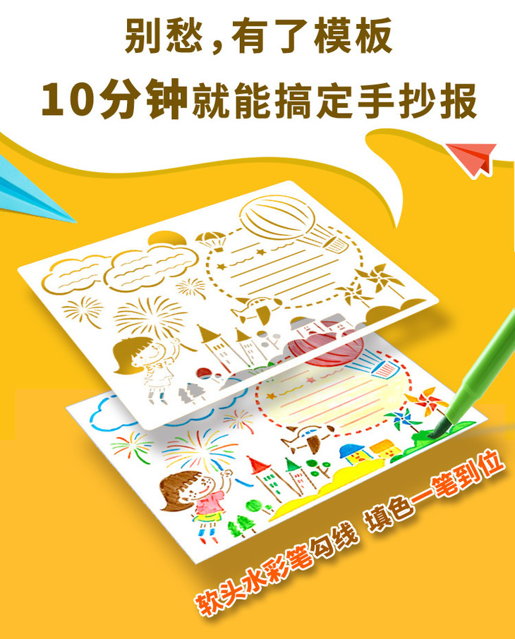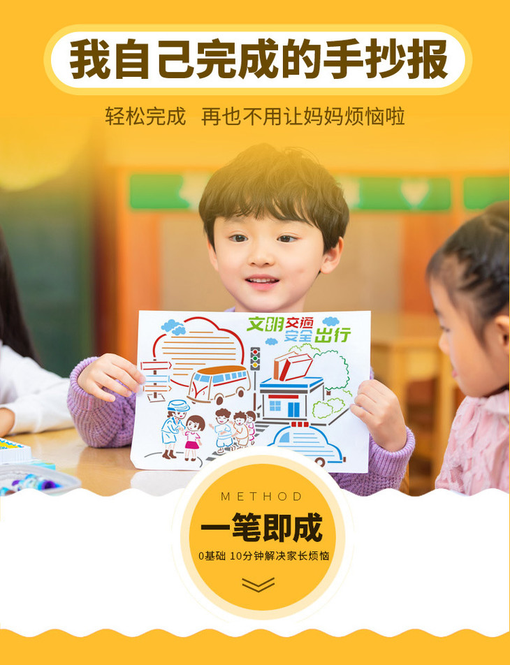 🔊这么一套高定版豪华手抄报套装,真的能给小朋友省下好多时间✈️也给父母省了很多麻烦 毕竟现在时间宝贵🙊直接按模版作画,5-10分钟就能搞定手抄报作业,简直太美了 🐚现成的模板,不需要自己设计,有各种图案可以直接描或是直接上色 不仅能快速完成🍀节省时间,对家长来说减轻了负担 也不是a4纸打印的模版上色🐾这样完全没有挑战性,想要的话自己百度找图案打印出来就好 💐但是这样就没有任何一定创造力,模板作画可以培养独立性方面,强调孩子可以自己做 还有材料方便,一套搞定所有🌈12张模版还能让小朋友自己拼接,让手抄报看起来更精美