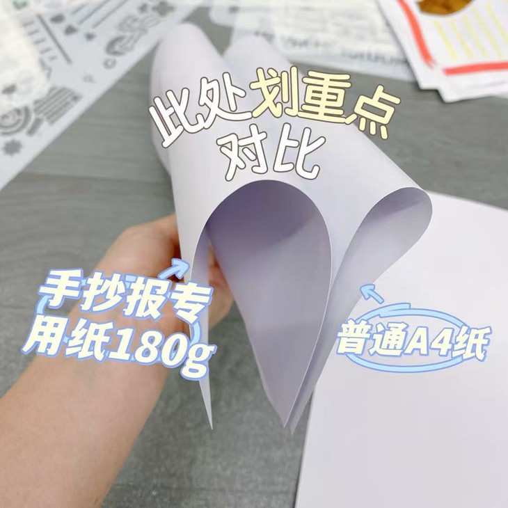💯认准高货品质‼️目前只有我们团给大家用专用手抄报纸 大家都是用普通A4代替❌普通A4纸价格确实会便宜很多,但是弊端也很多 颜料轻轻涂上去就透色,用马克笔涂色则会出现毛絮🚫整幅下来根本没发近看,越看越想撕掉,简直会逼死强迫症 🎩作为一个对品质有要求的团长,我一定要做最好品质的,你就买回去画吧🏆一画一个不吱声