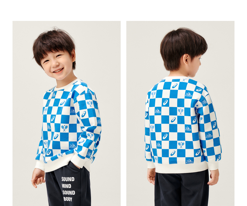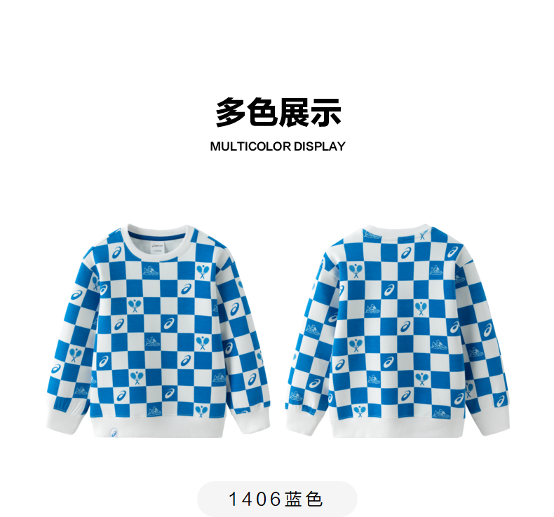 【商城同款】ASICS/亚瑟士童装长袖运动印花长袖卫衣T恤2024秋季