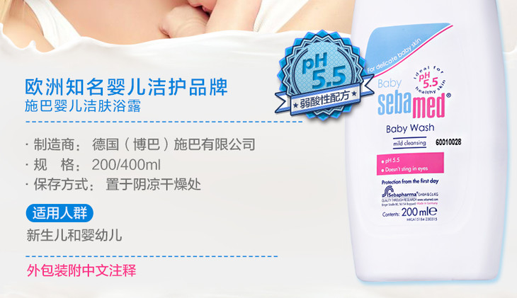 德国 sebamed施巴婴儿洁肤浴露200ml/400ml