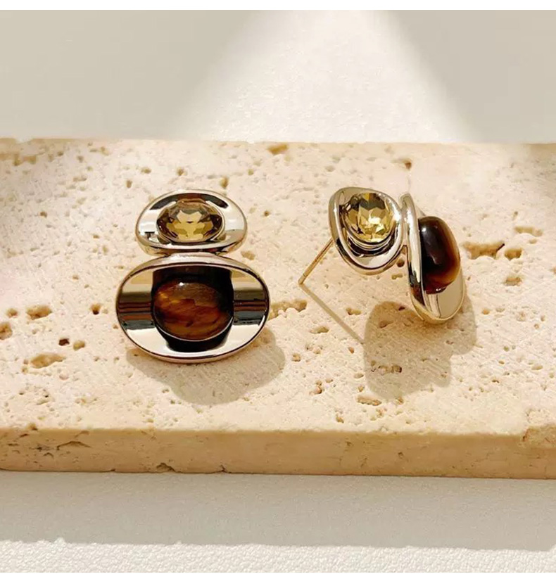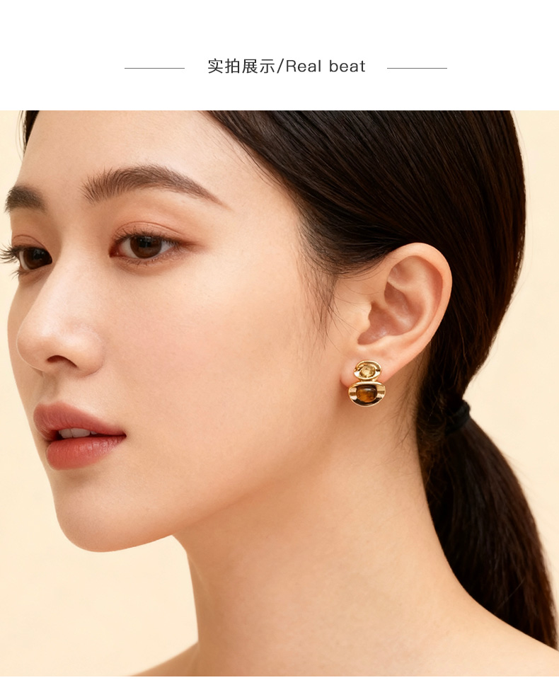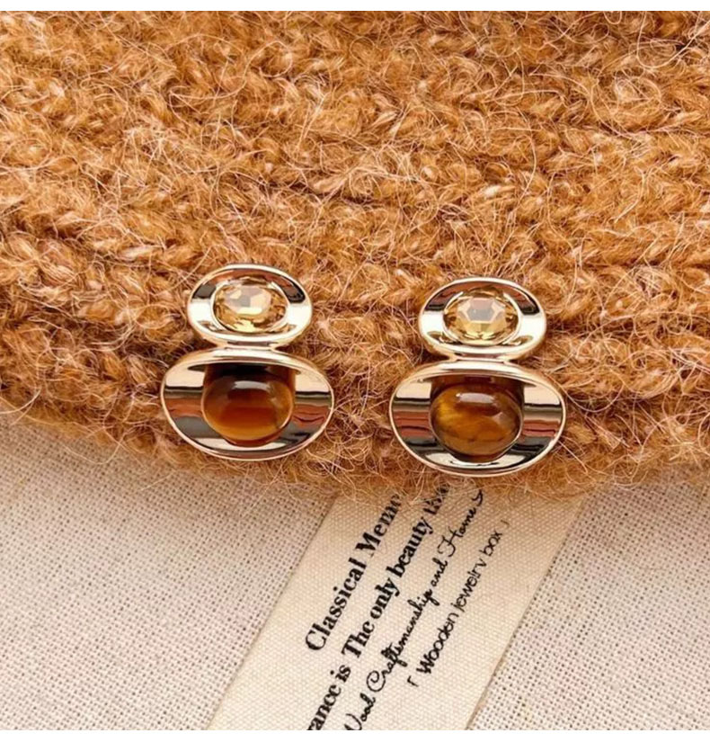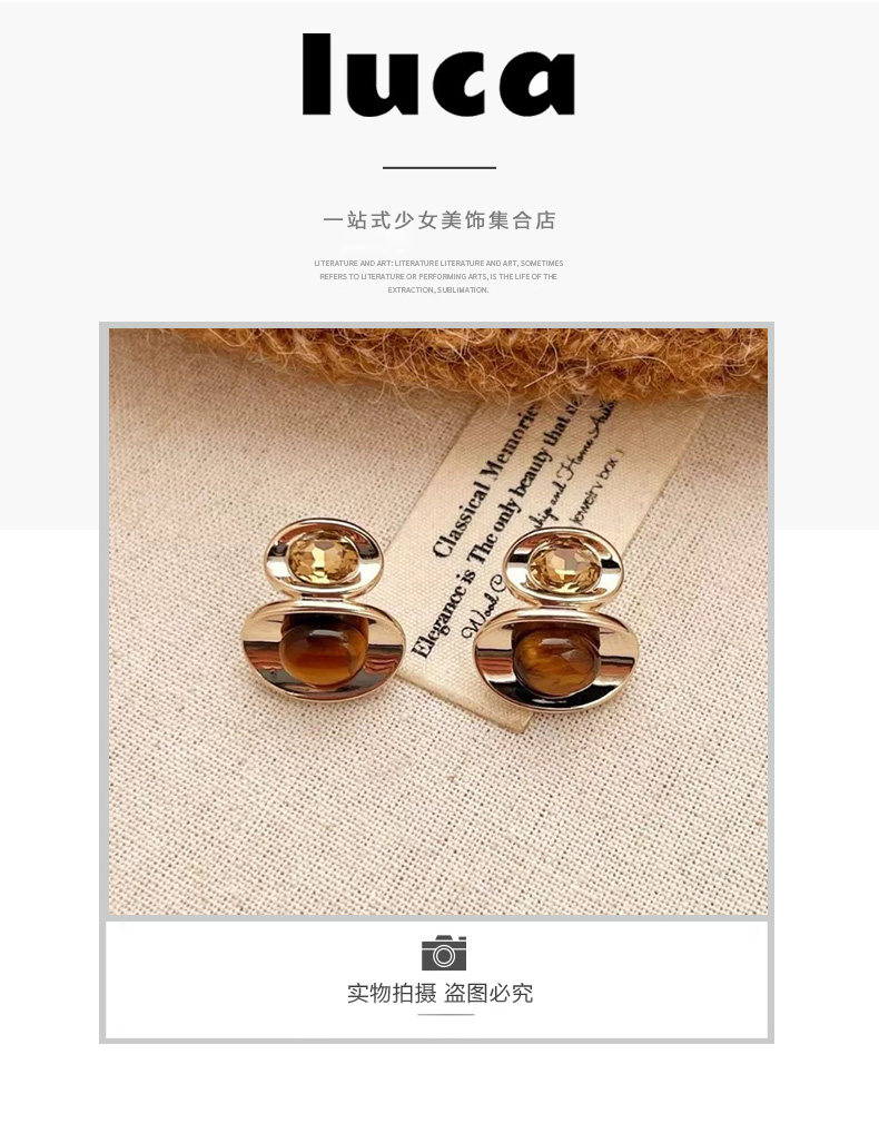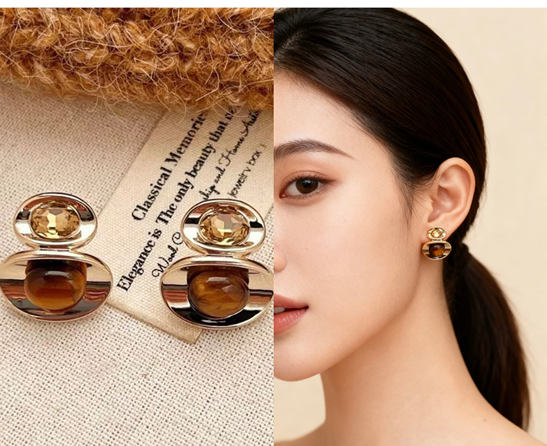 高级感虎眼石椭圆形耳钉轻奢复古风耳环-纪念日百货门店同款166994754