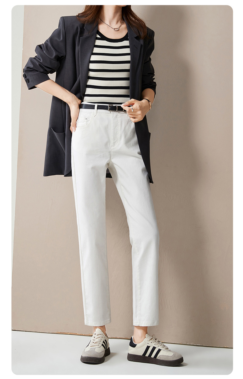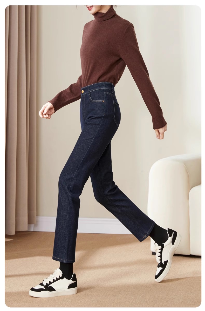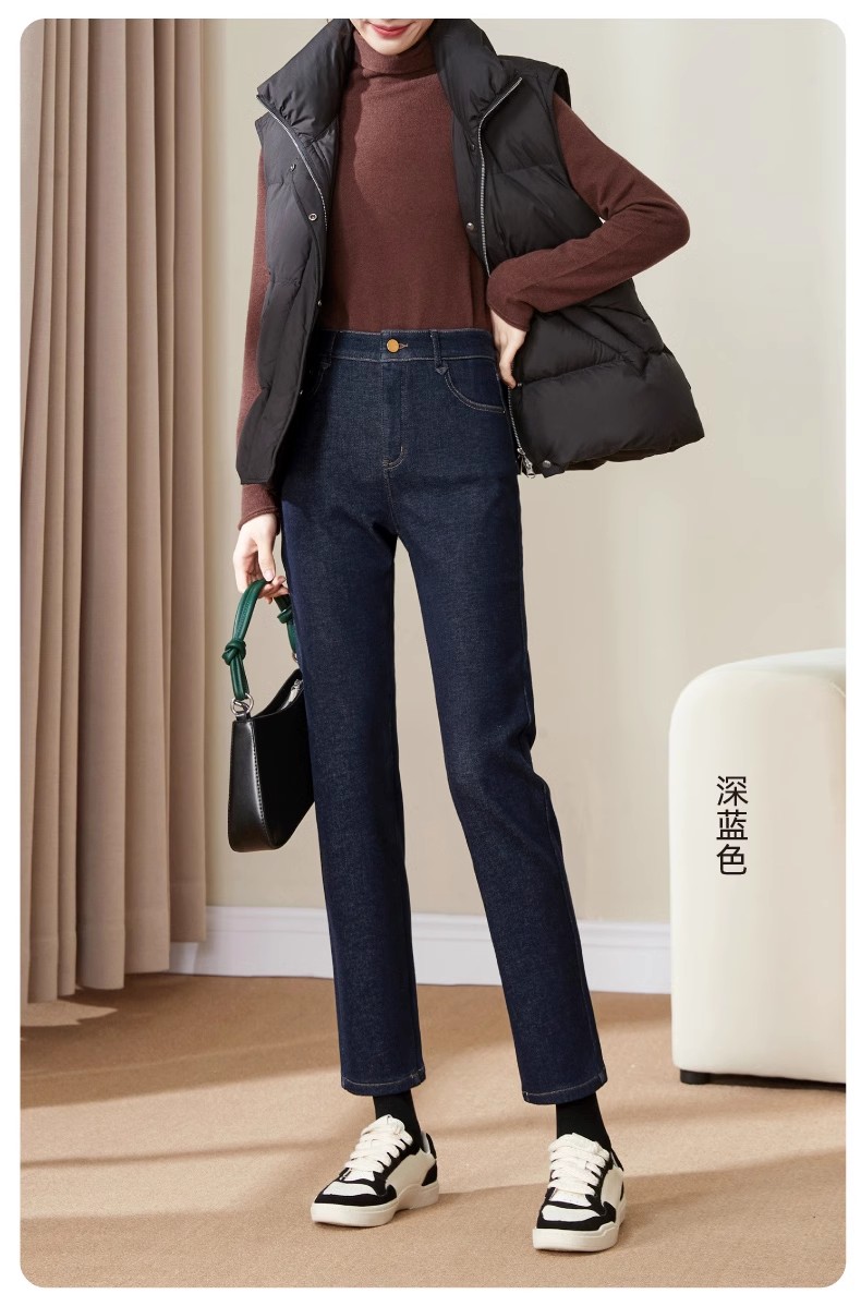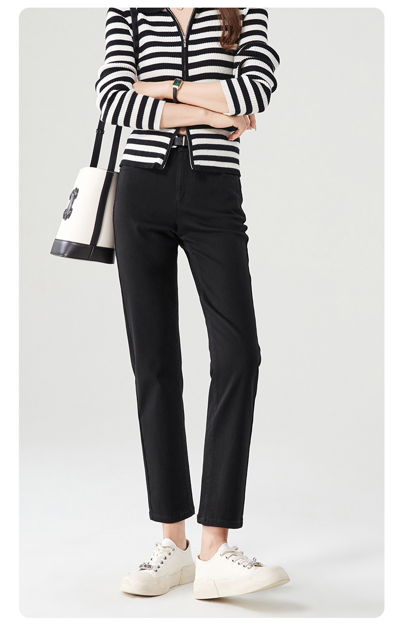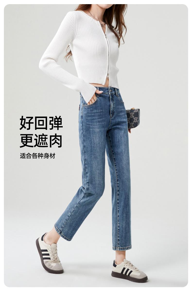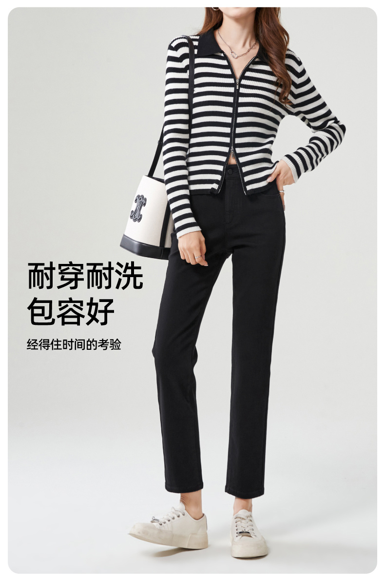 逸阳不易掉色深蓝色直筒牛仔裤女2024春季新款显瘦黑色烟管裤9989