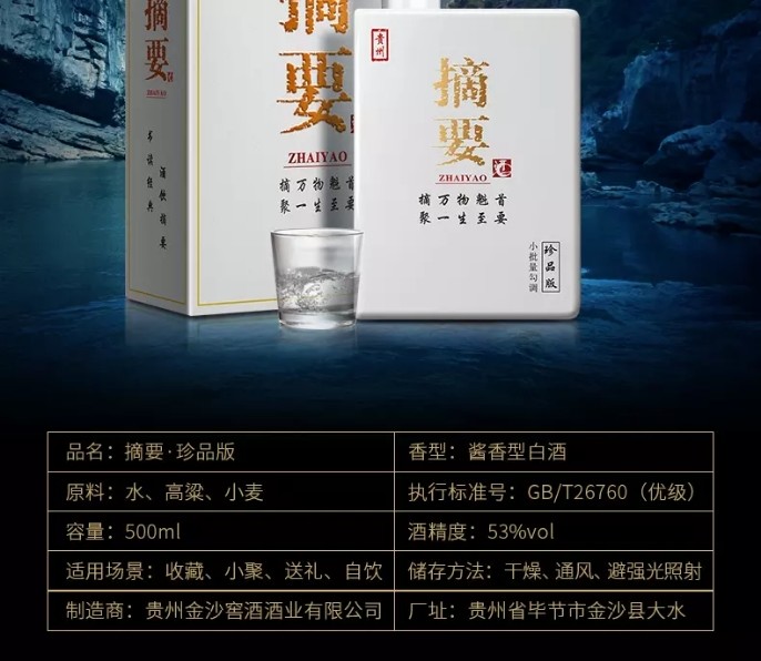 贵州金沙回珍品摘要 商务版白盒,500ml